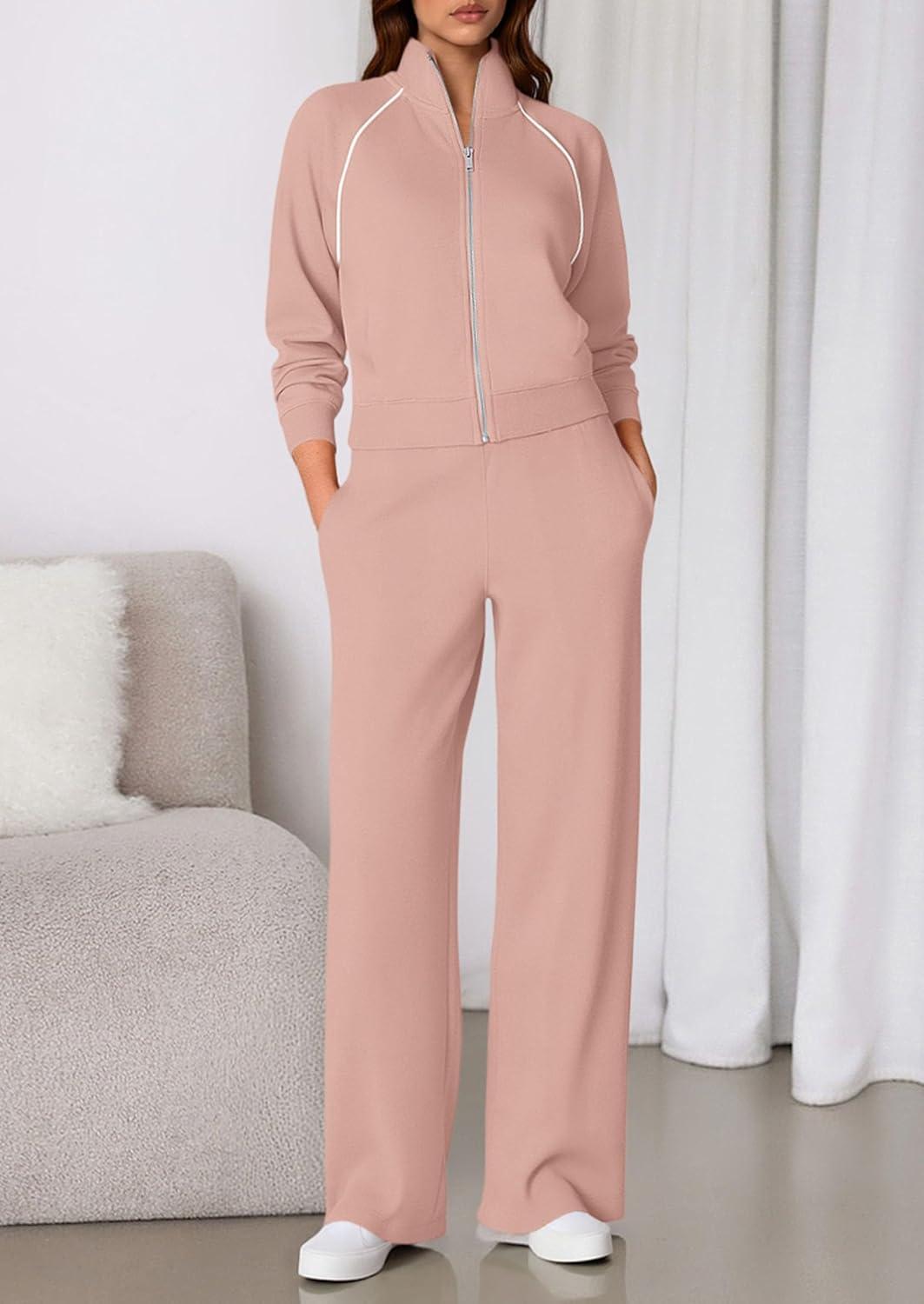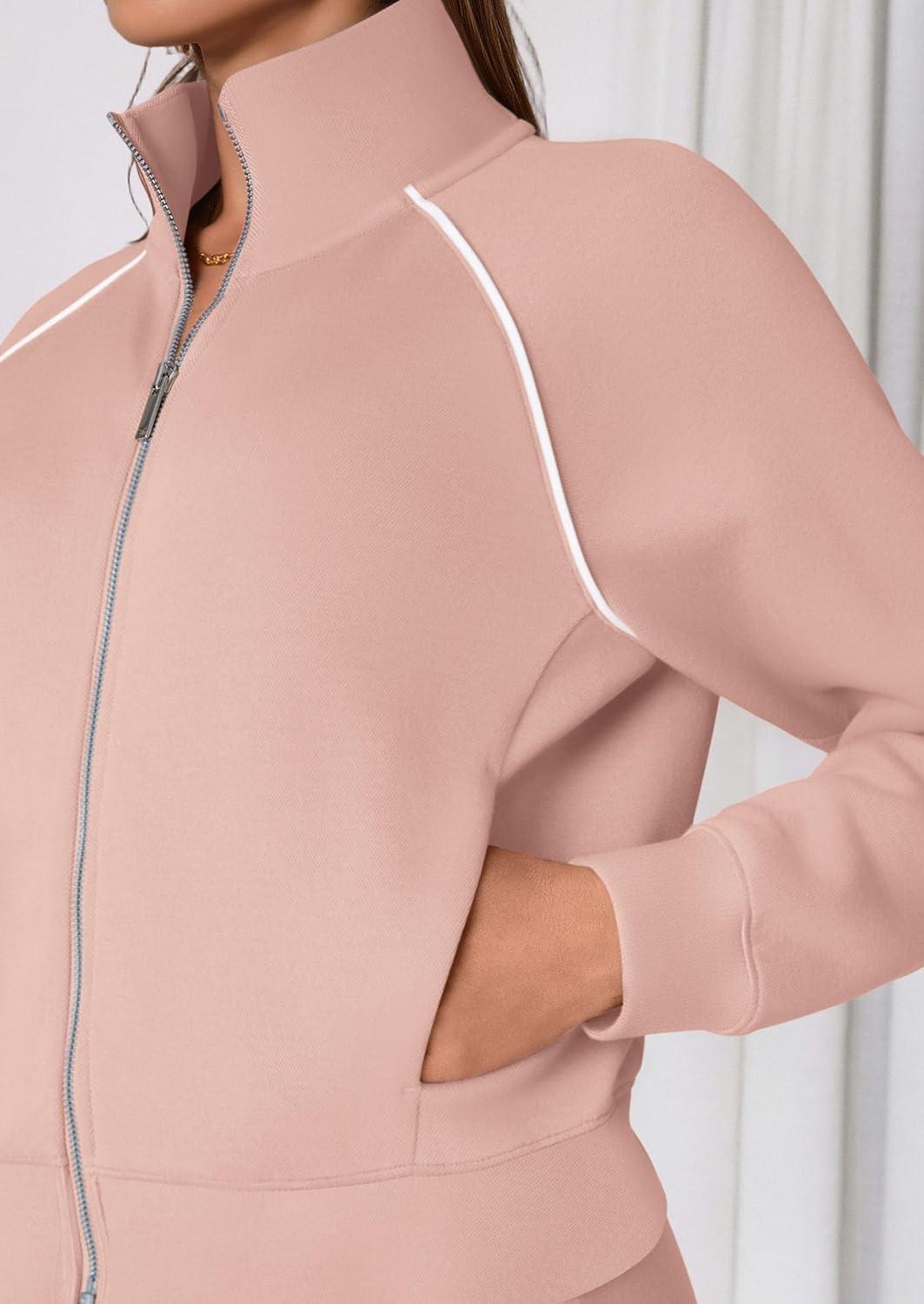 imagePRETTYGARDEN Womens 2 Piece Outfits Sweatsuits 2025 Fall Full Zip Sweatshirts Workout Pants Matching Lounge Sets TracksuitsLight Pink