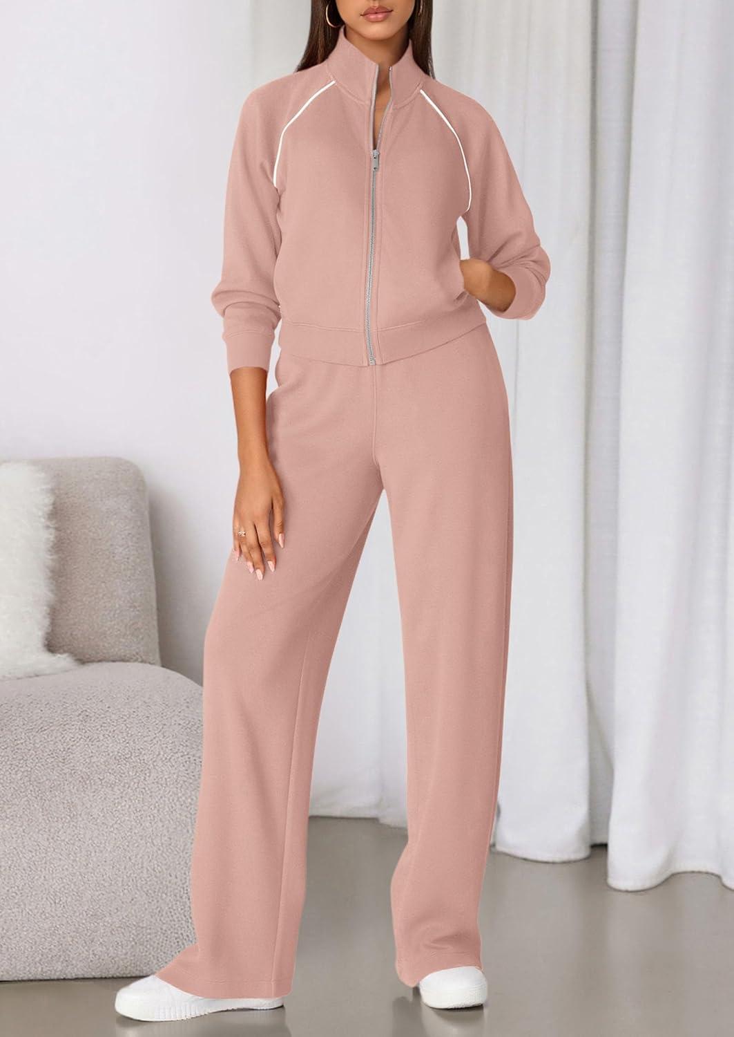 PRETTYGARDEN Womens 2 Piece Outfits Sweatsuits 2025 Fall Full Zip Sweatshirts Workout Pants Matching Lounge Sets Tracksuits(Light Pink)
