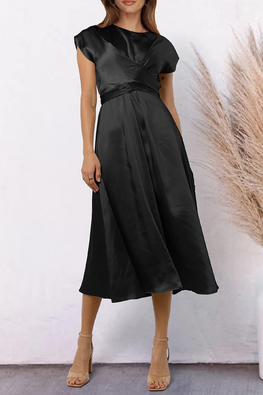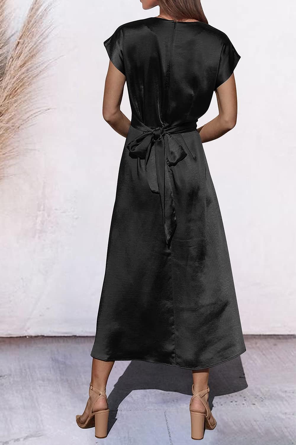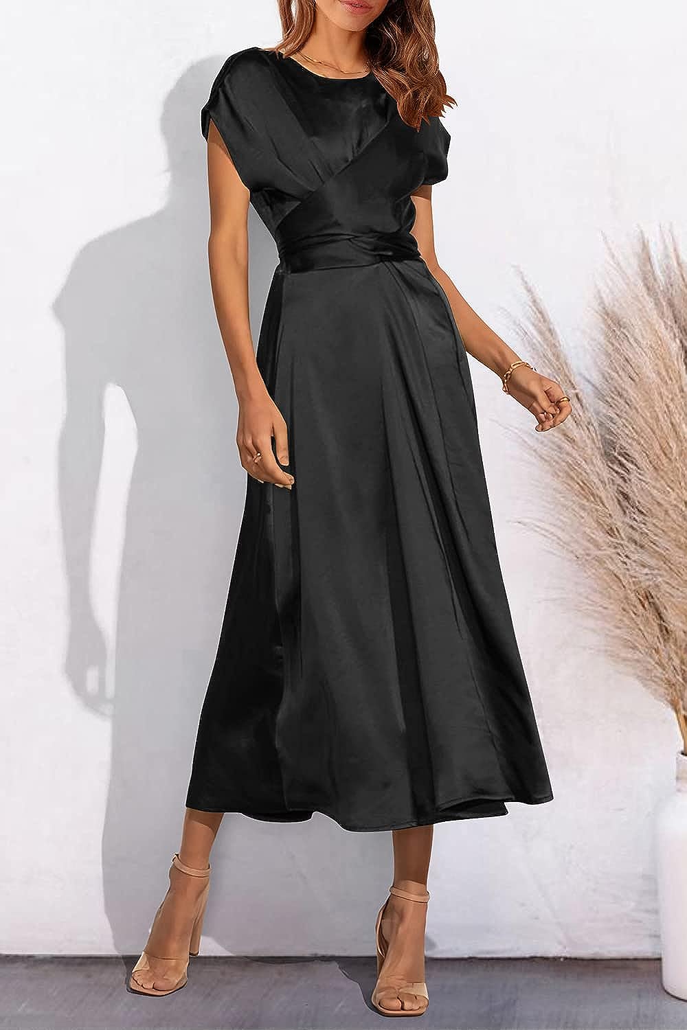 STYLISH FEATURES: The Satin Dress Features In Tie Waist In The Back, Adds A Sense Of Elegance And Classy. Women Midi Dress With Cap Sleeve Design Never Out Of Date, Shows Off Your Generous And Gorgeous. This Crewneck Swing Dress Is Lightweight And Breathable, Easy Dress Up And Down. Ladies A-Line Dress Can Modify Your Figure Well, Hide The Little Tummy. Classic Solid Color Style More Easy To Match Attractive And Fashionable Looks.
