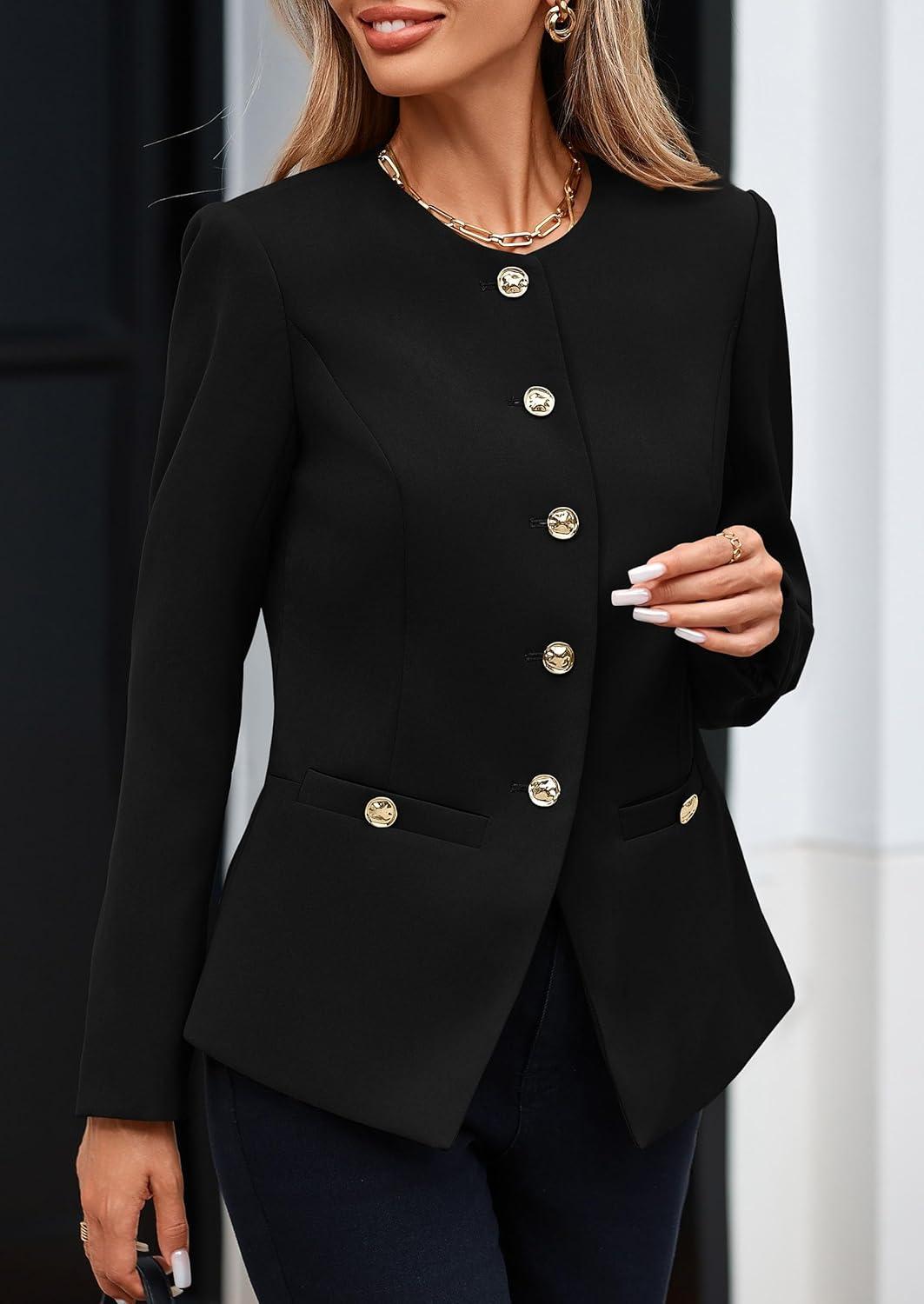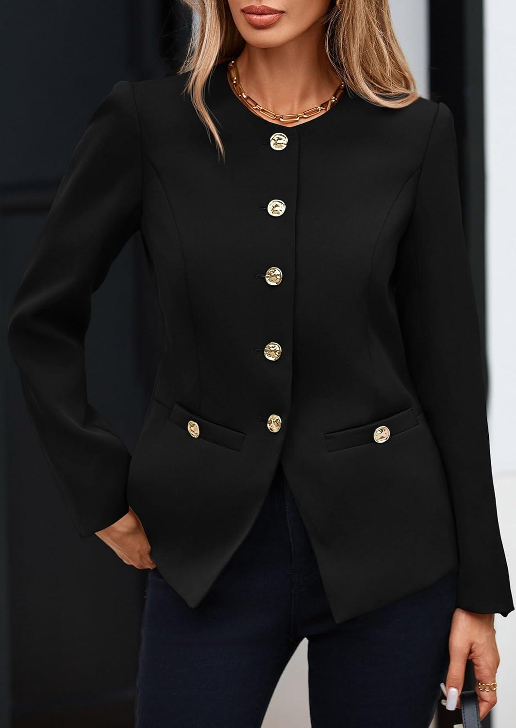 imagePRETTYGARDEN Womens 2025 Fall Blazers Button Down Fitted Lightweight Dressy Work Suit Jackets Trendy Business Casual OutfitsBlack