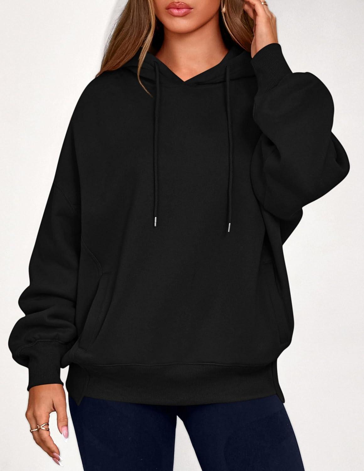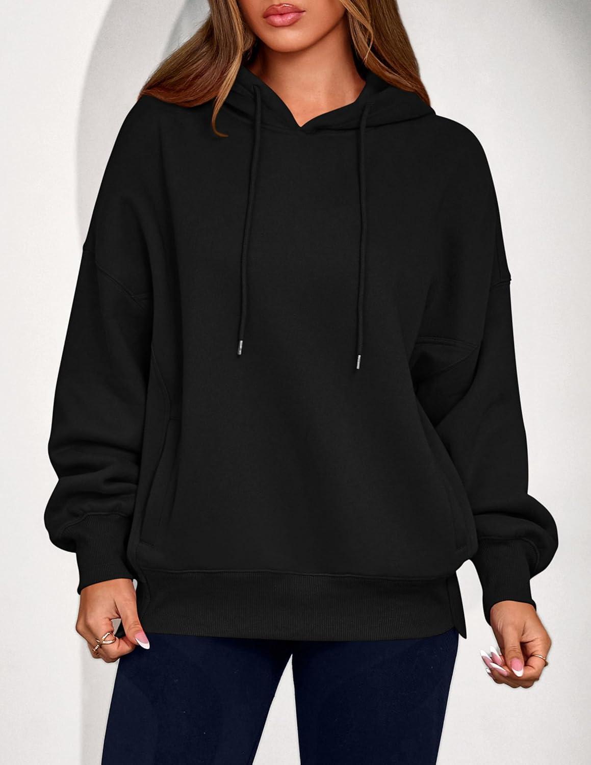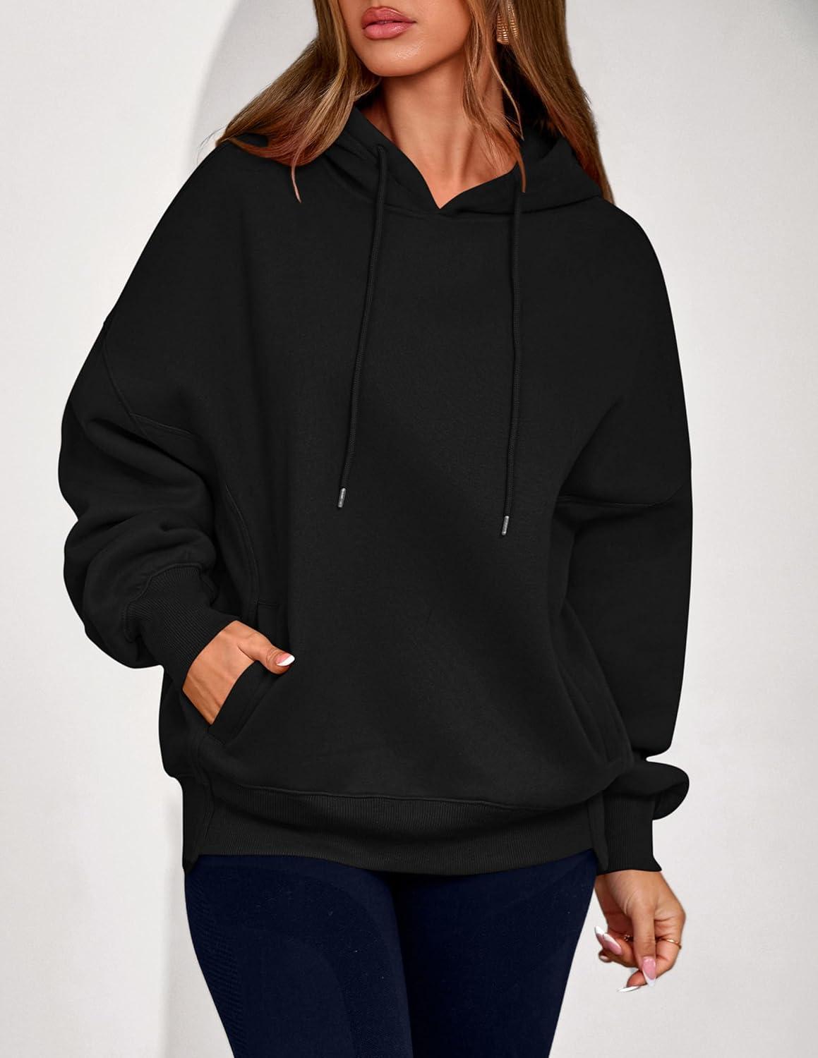 PRETTYGARDEN Women's 2025 Fall Fashion Oversized Hoodies Sweatshirt Fleece Long Sleeve Going Out Tops Trendy Winter Clothing(Black)