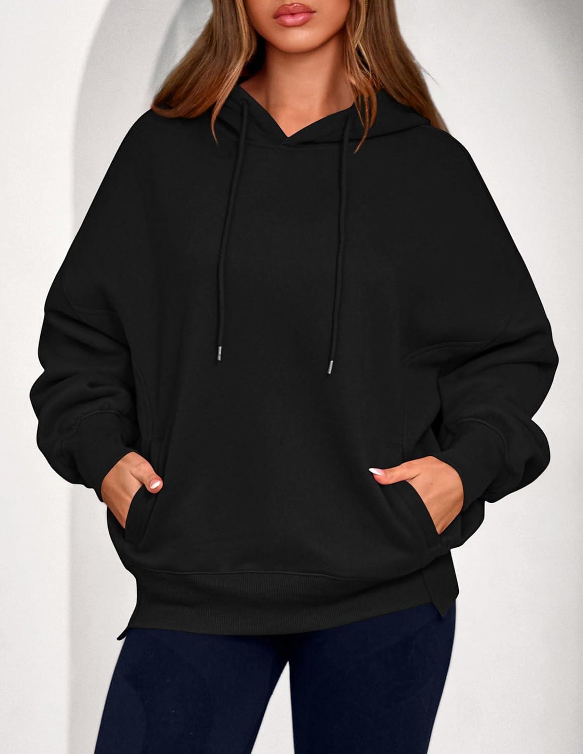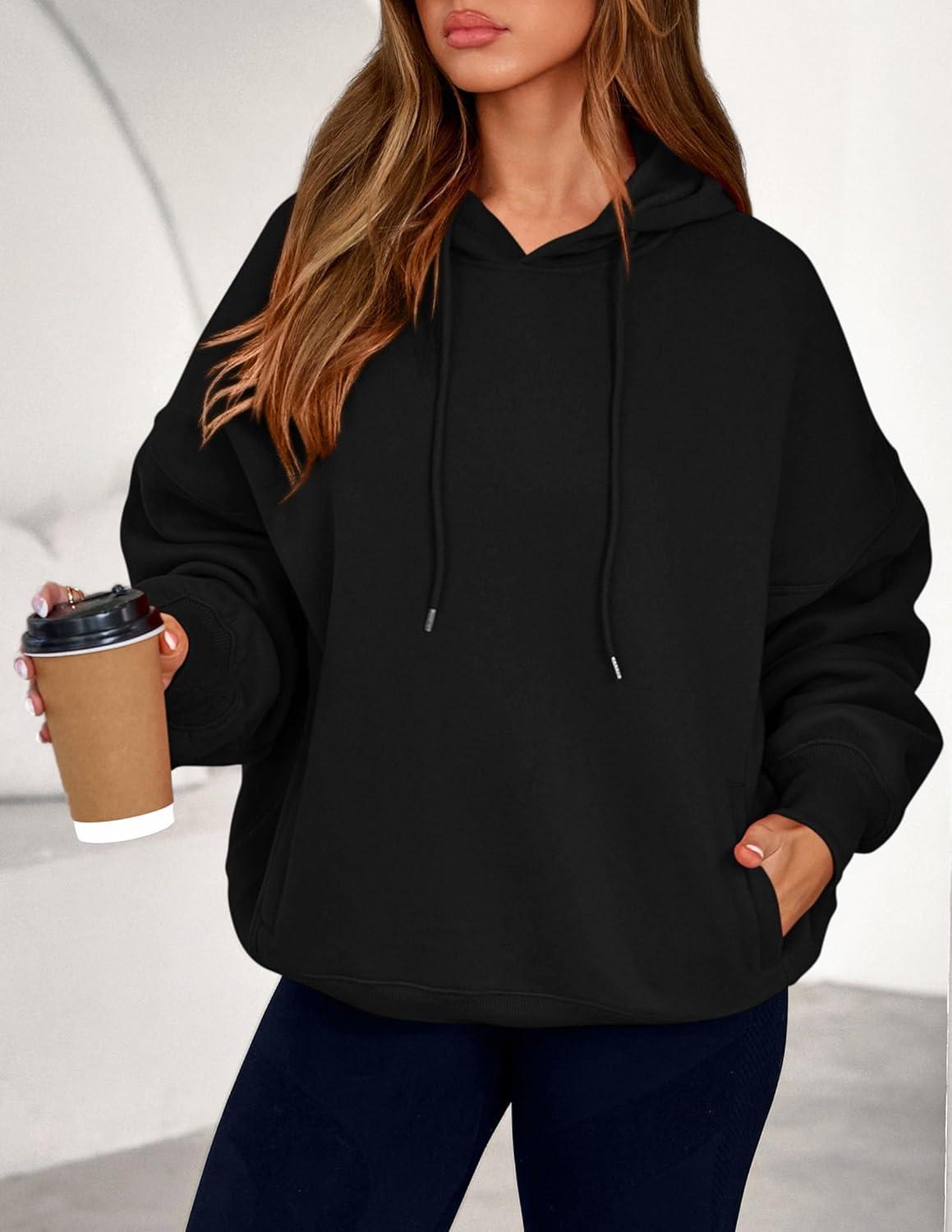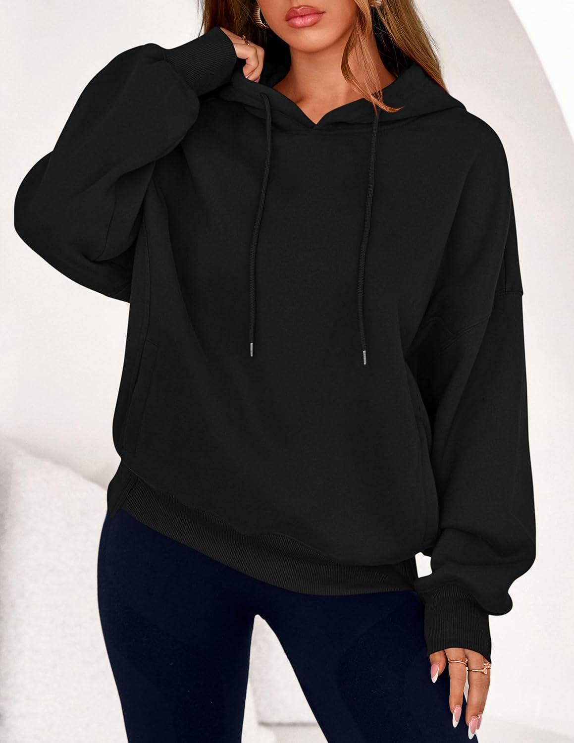 PRETTYGARDEN Women's 2025 Fall Fashion Oversized Hoodies Sweatshirt Fleece Long Sleeve Going Out Tops Trendy Winter Clothing(Black)