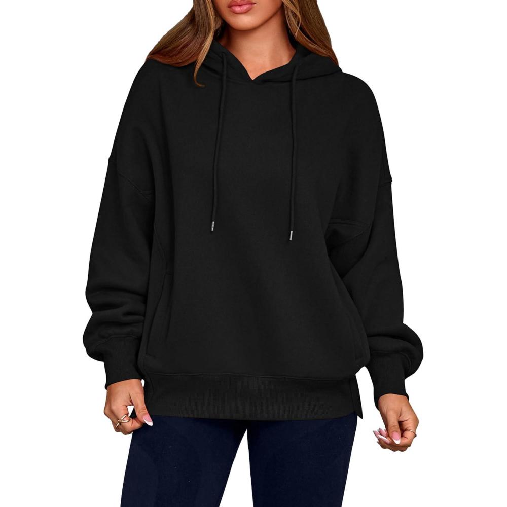 PRETTYGARDEN Women’s 2025 Fall Fashion Oversized Hoodies Sweatshirt Fleece Long Sleeve Going Out Tops Trendy Winter Clothing(Black)