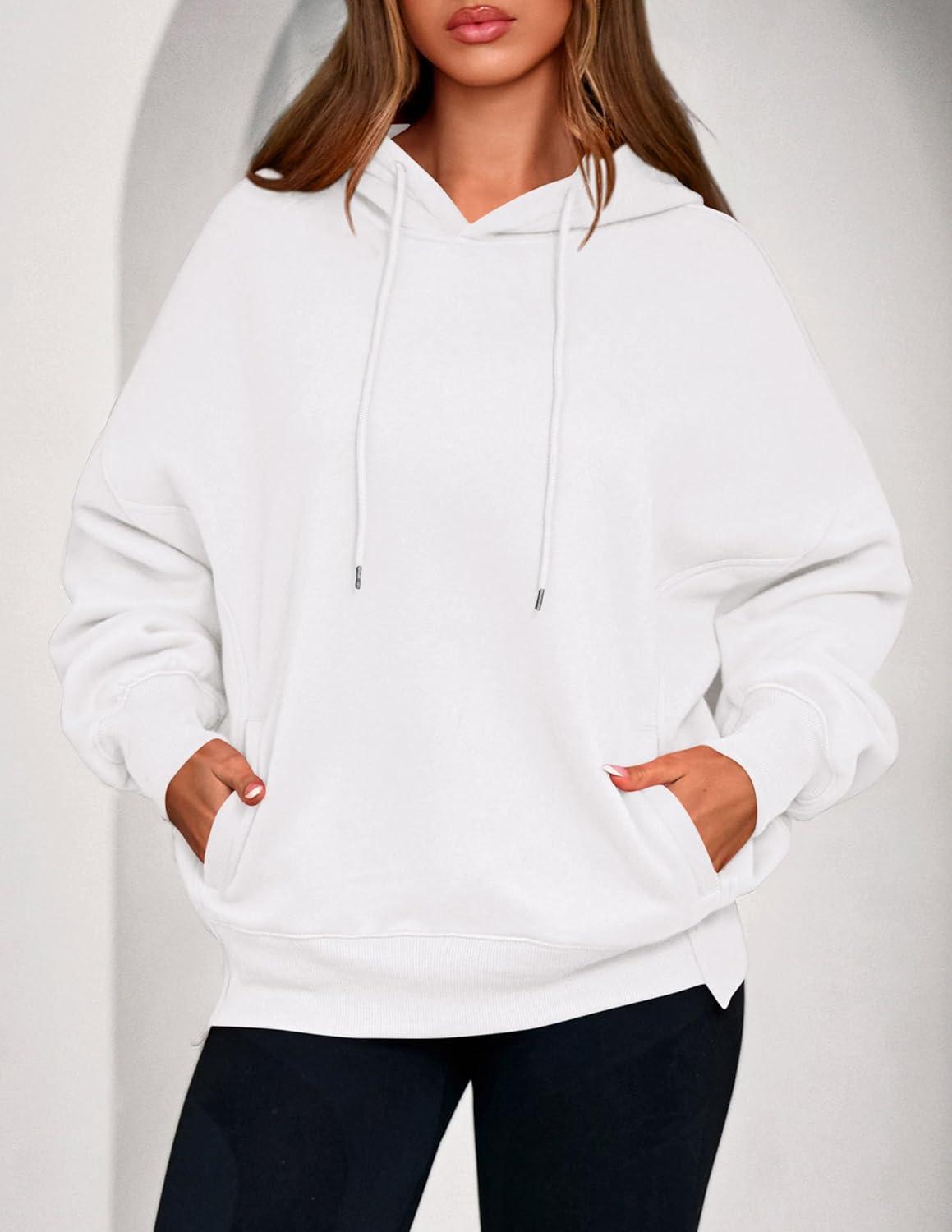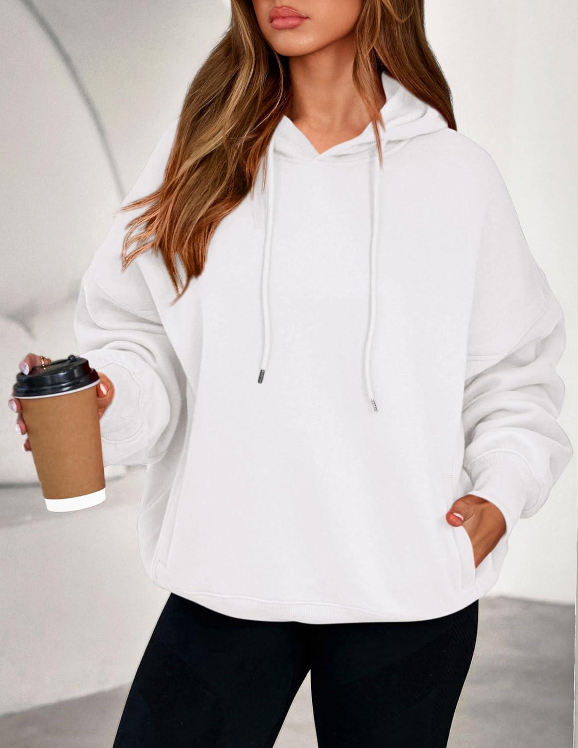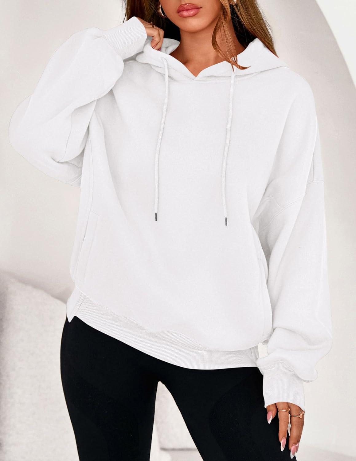PRETTYGARDEN Women’s 2025 Fall Fashion Oversized Hoodies Sweatshirt Fleece Long Sleeve Going Out Tops Trendy Winter Clothing(White)
