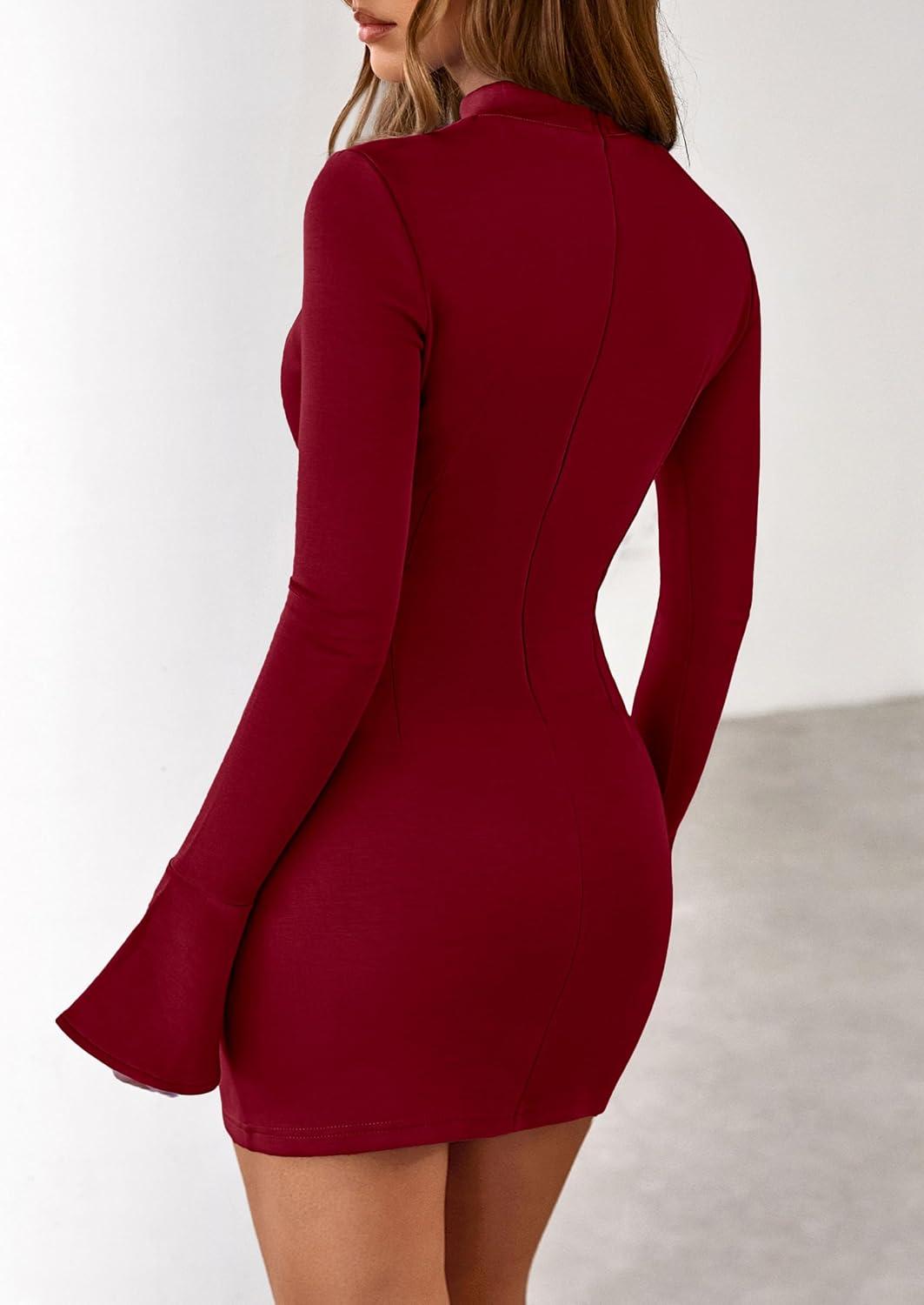 PRETTYGARDEN Women's 2025 Fall Short Formal Dresses Long Sleeve Mock Neck Elegant Wedding Guest Party Club Bodycon Mini Dress(Burgundy)
