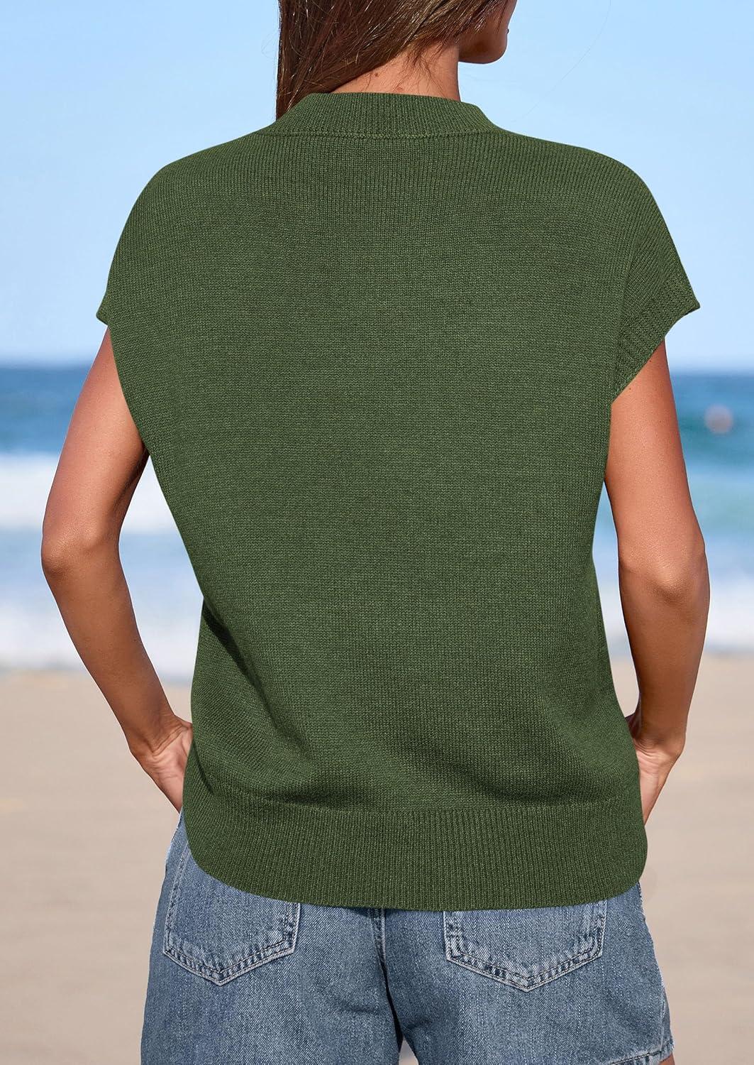 PRETTYGARDEN Women's 2026 Spring Sweater Vest Trendy Flower Knit Short Sleeve Cute Pullover Tank Tops Summer Fashion Clothing(Army Green)