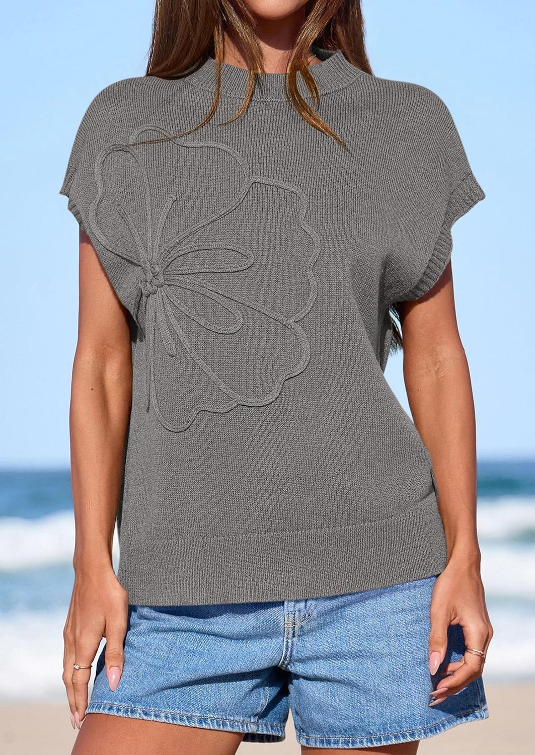 PRETTYGARDEN Women's 2026 Spring Sweater Vest Trendy Flower Knit Short Sleeve Cute Pullover Tank Tops Summer Fashion Clothing(Grey)