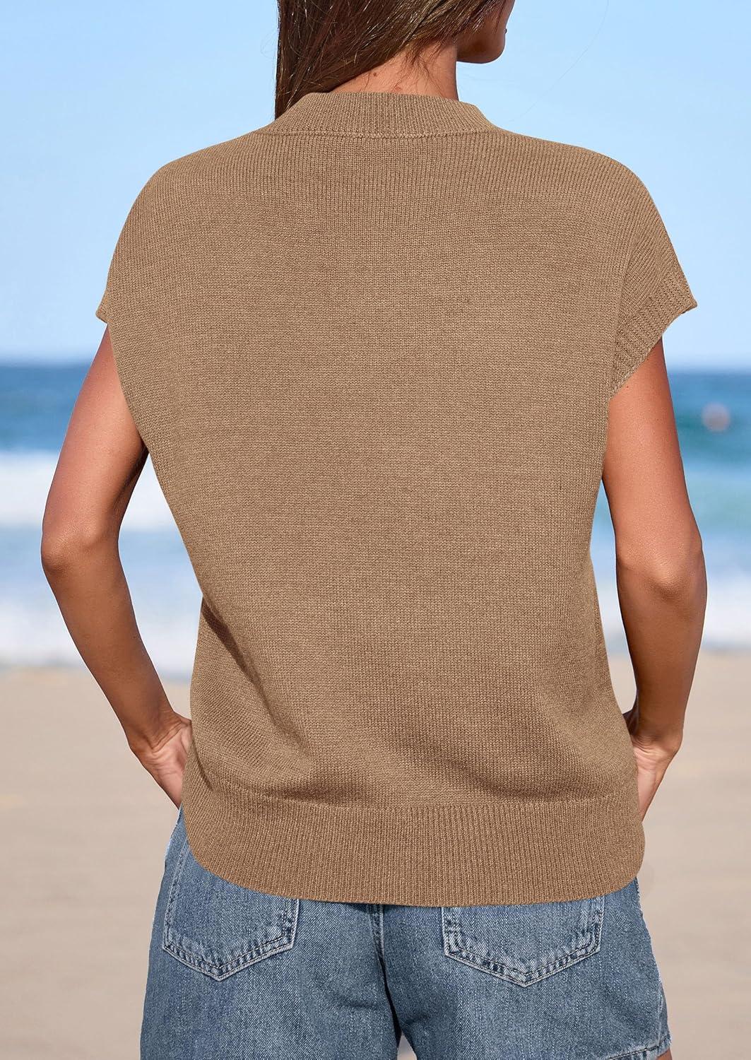 PRETTYGARDEN Women's 2026 Spring Sweater Vest Trendy Flower Knit Short Sleeve Cute Pullover Tank Tops Summer Fashion Clothing(Khaki)