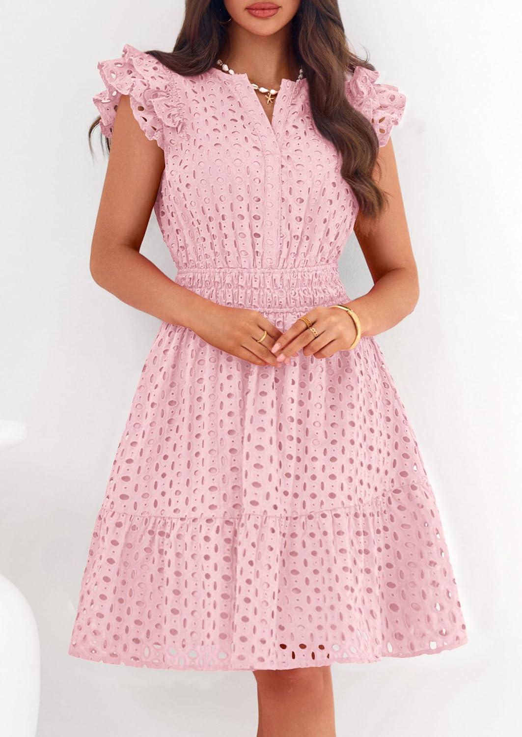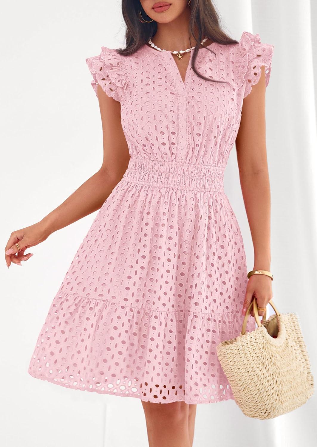 Be the first to review “PRETTYGARDEN Women’s 2026 Summer Sundresses Eyelet Cap Sleeve V Neck Short Boho Wedding Guest Dress Beach Vacation Clothes(Pink)” Cancel reply