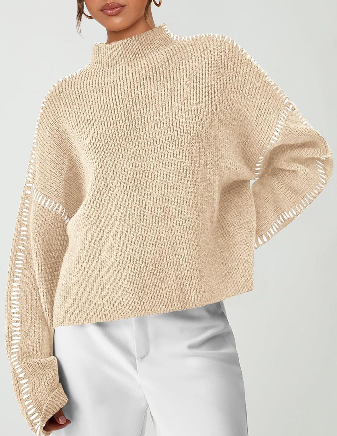 PRETTYGARDEN Women's Chunky Knit Sweaters 2025 Fall Long Sleeve Mock Neck Oversized Pullover Tops Winter Fashion Clothes(Apricot)