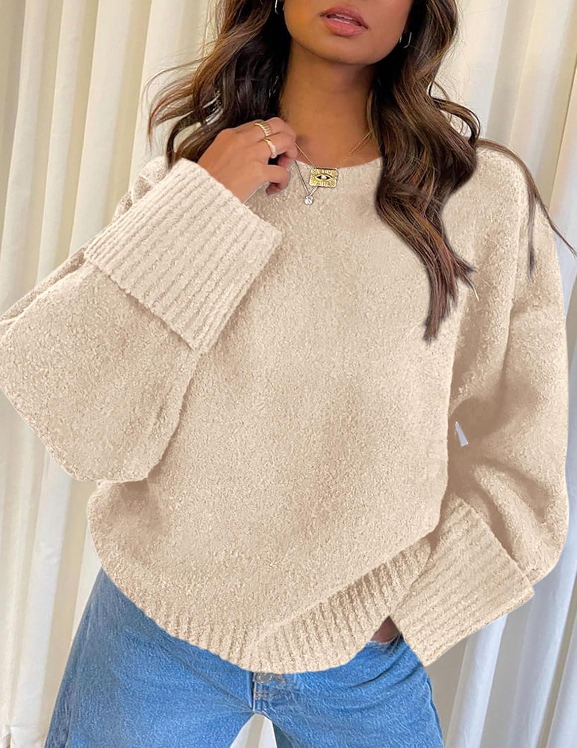 PRETTYGARDEN Women’s Fall Oversized Sweaters Casual Crewneck Pullover Long Sleeve Fuzzy Chunky Knit Tops Blouse(Beige)