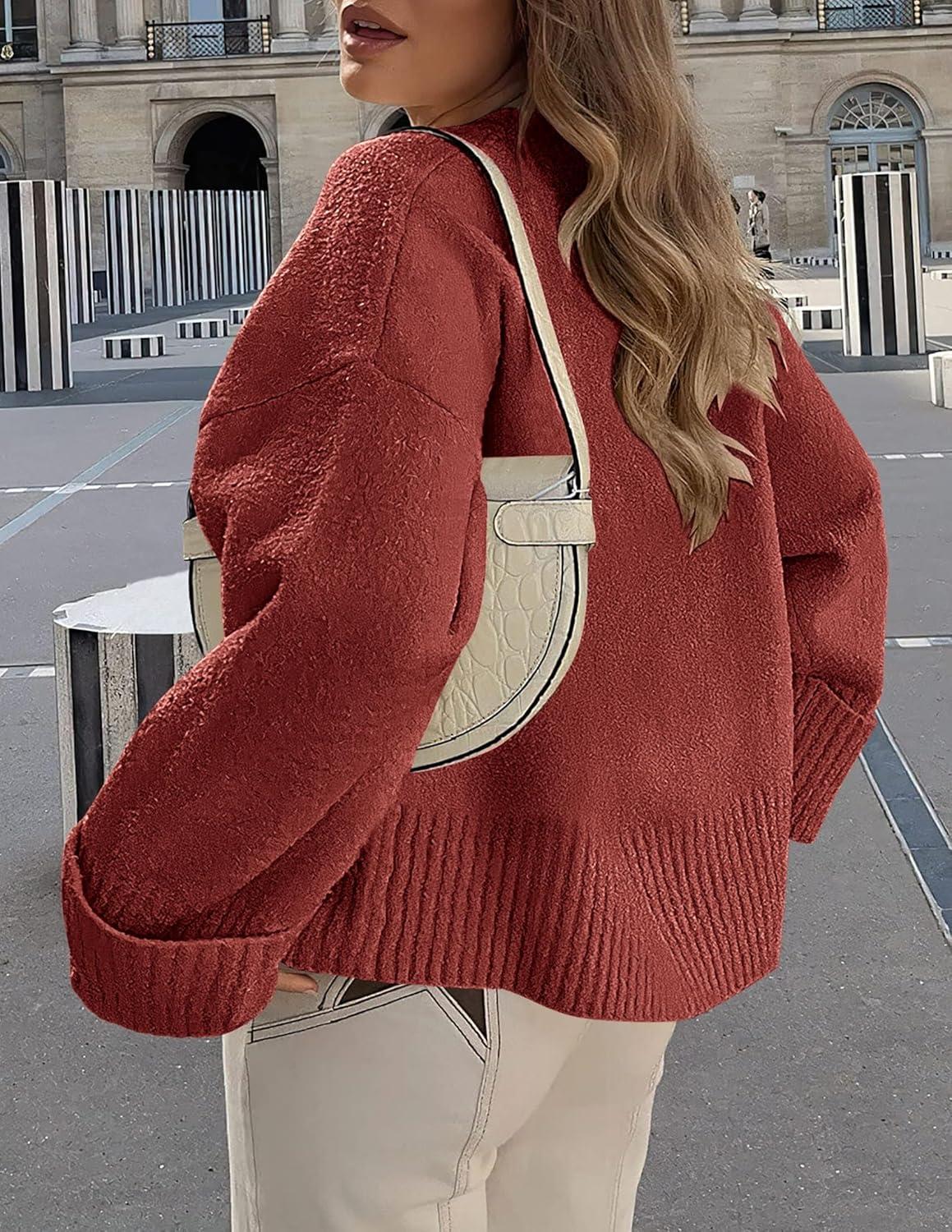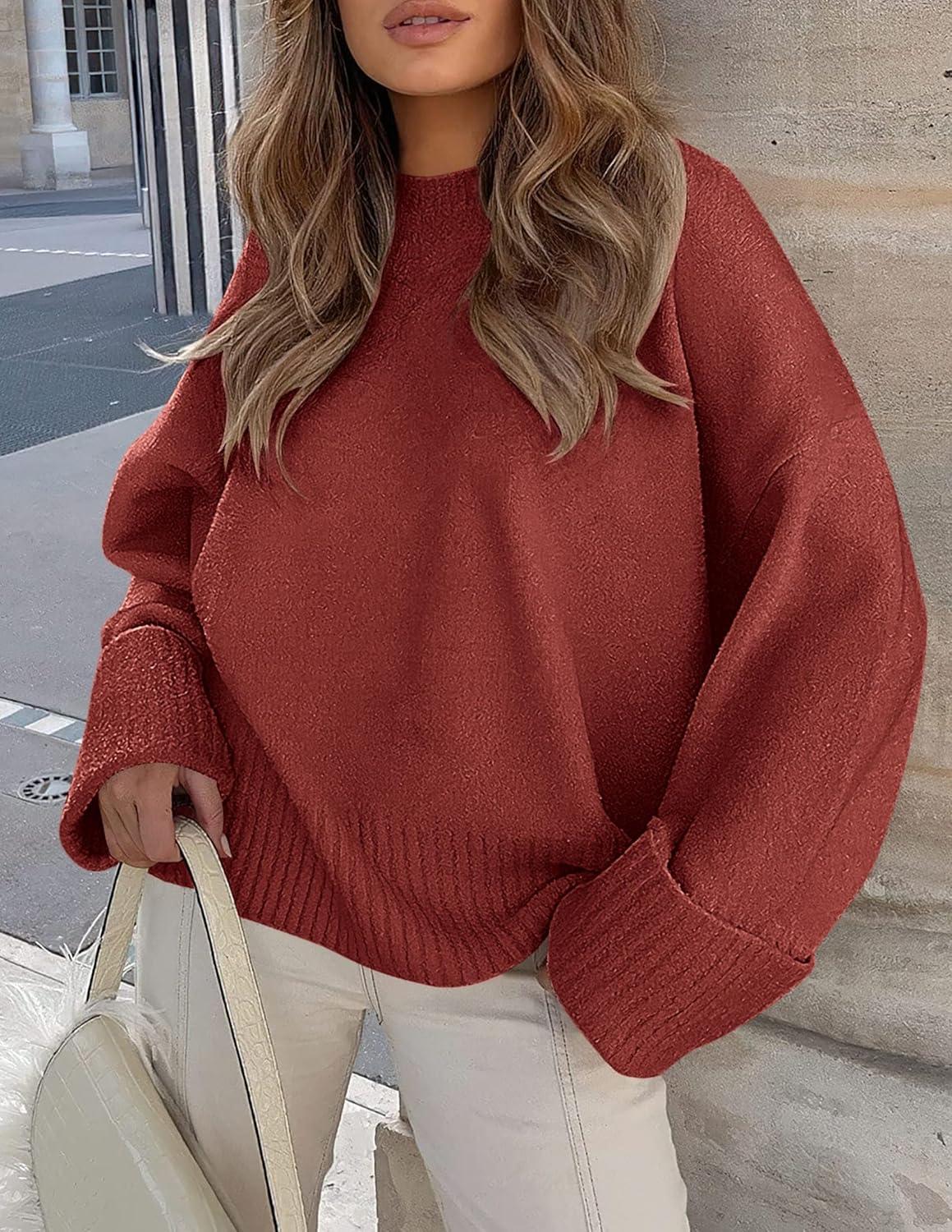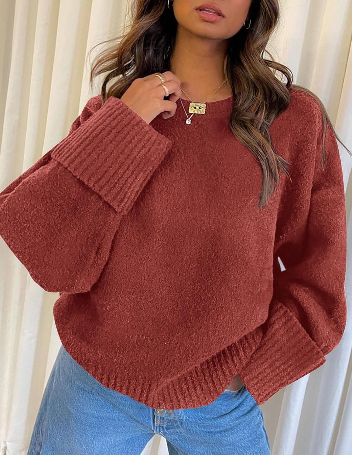 PRETTYGARDEN Women's Fall Oversized Sweaters Casual Crewneck Pullover Long Sleeve Fuzzy Chunky Knit Tops Blouse(Rust Red)