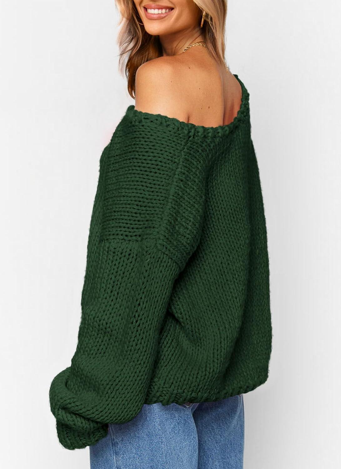 PRETTYGARDEN Women’s Fall Oversized Sweaters Long Sleeve V Neck Dressy Casual Chunky Knit Loose Pullover Tops Winter Clothing(Dark Green)