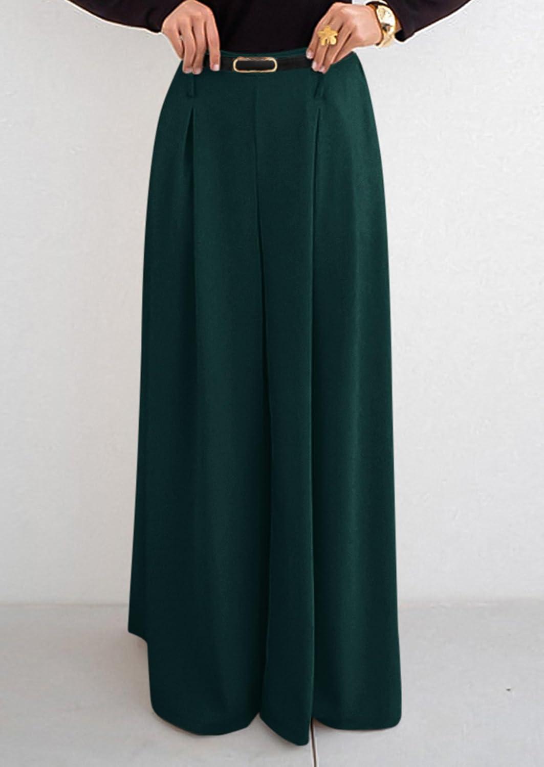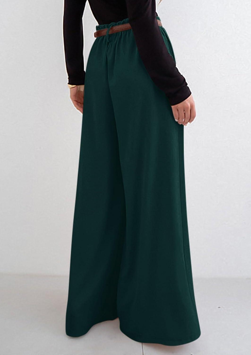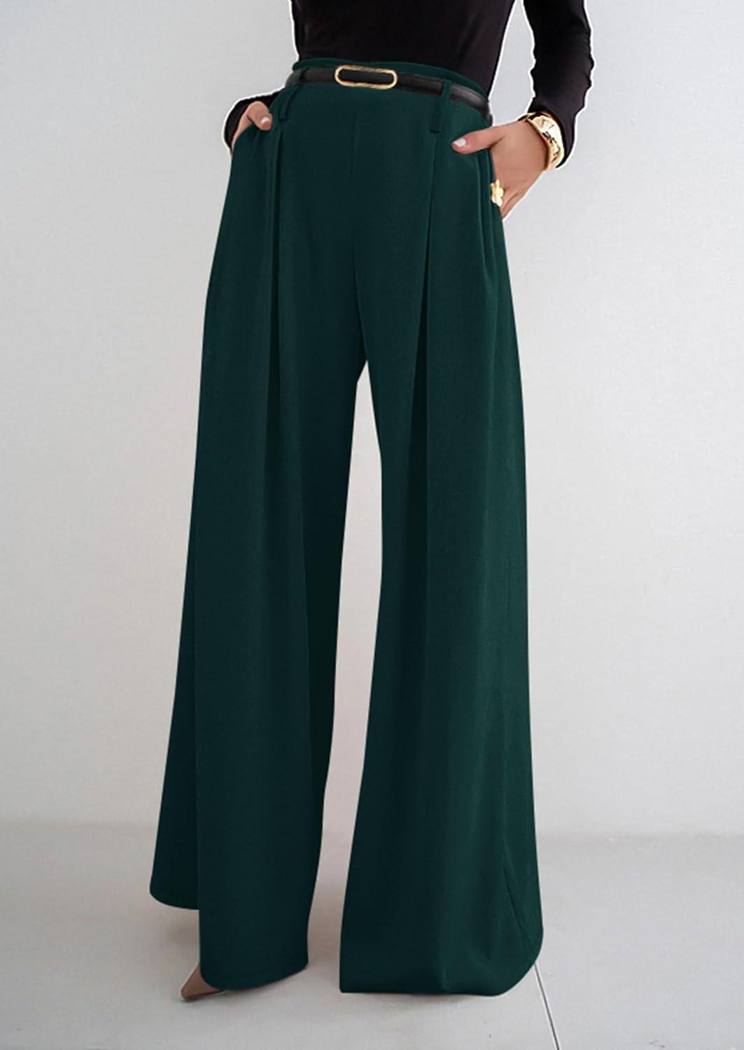 PRETTYGARDEN Womens Fall Wide Leg Trousers 2025 High Elastic Waist Loose Pleated Long Flowy Palazzo Work Pants with Pockets(Dark Green)