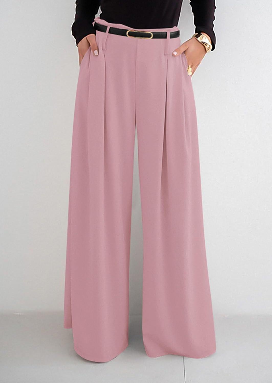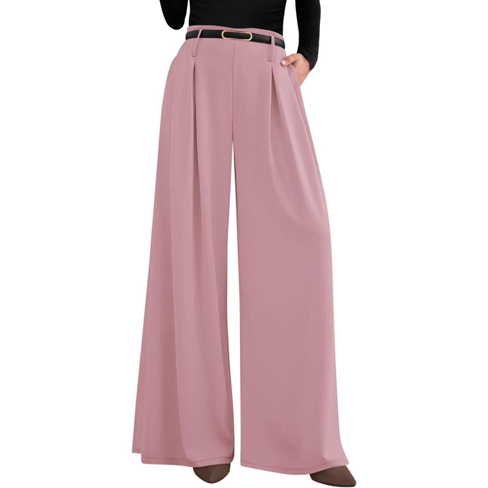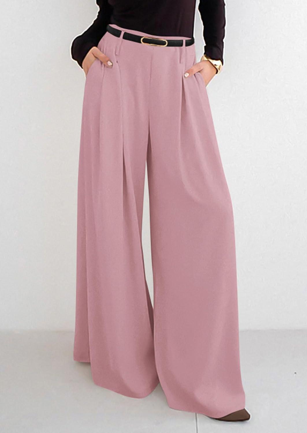 PRETTYGARDEN Womens Fall Wide Leg Trousers 2025 High Elastic Waist Loose Pleated Long Flowy Palazzo Work Pants with Pockets(Pink)