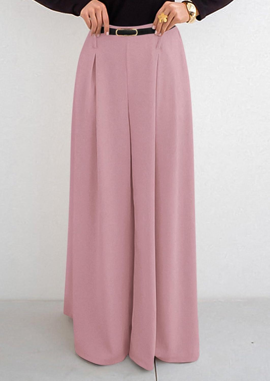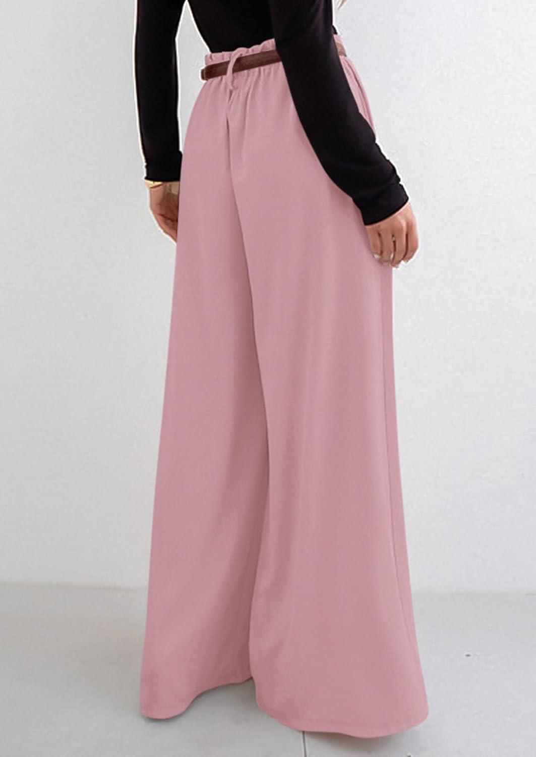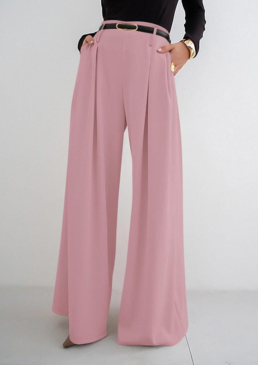 PRETTYGARDEN Womens Fall Wide Leg Trousers 2025 High Elastic Waist Loose Pleated Long Flowy Palazzo Work Pants with Pockets(Pink)