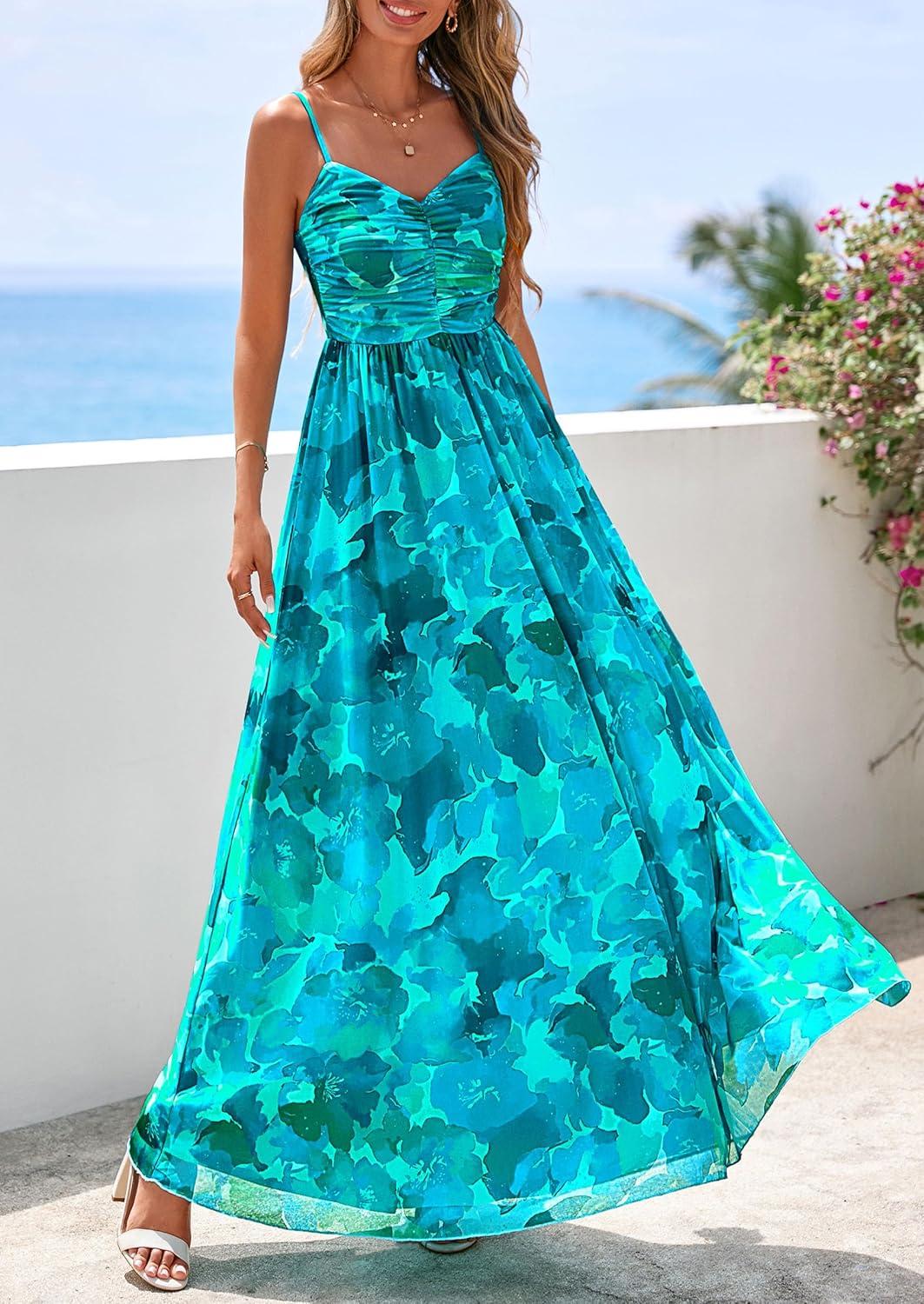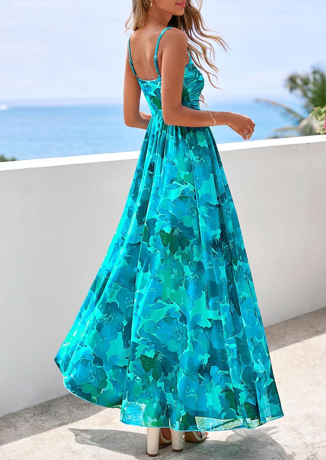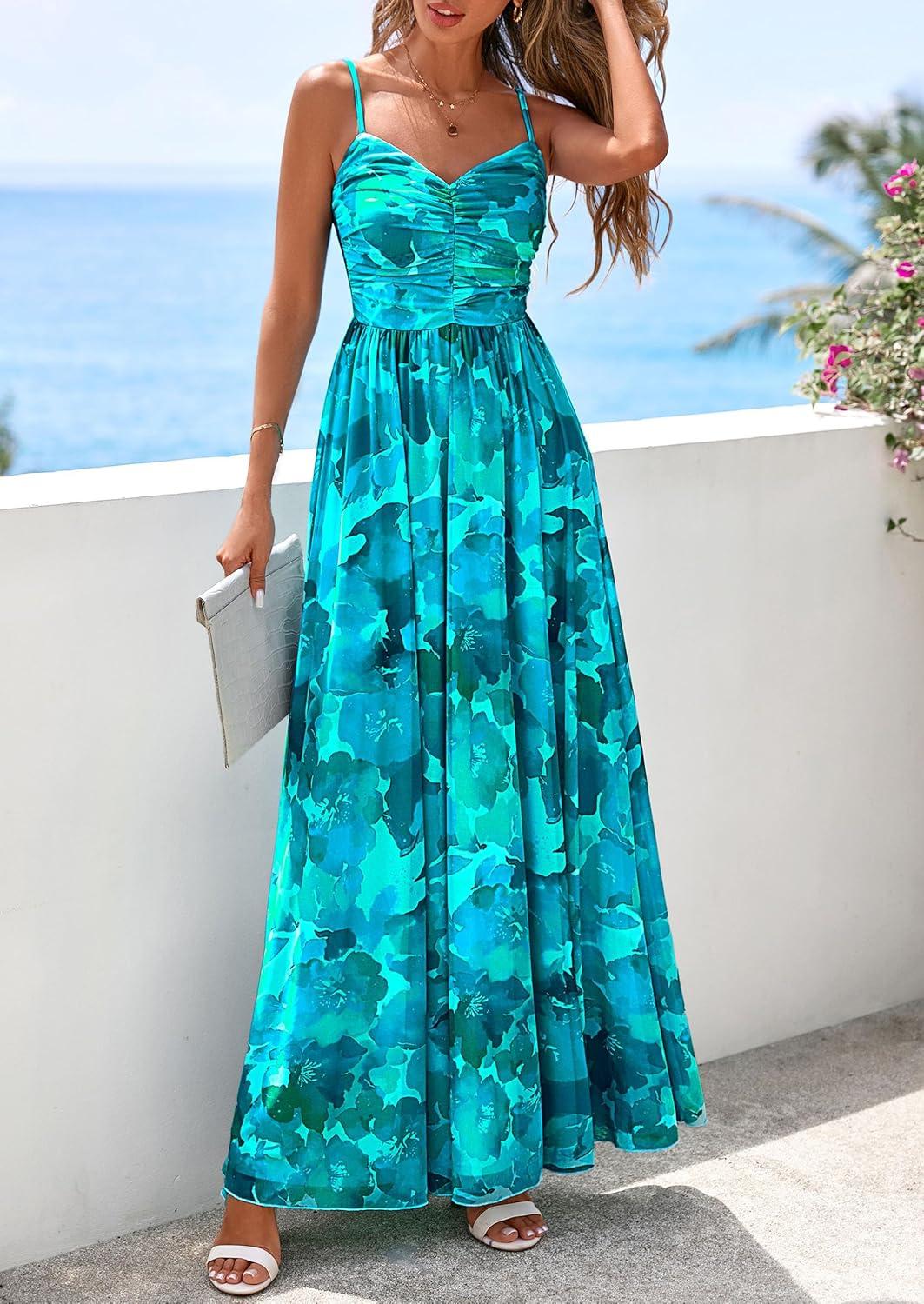 PRETTYGARDEN Women’s Floral Maxi Dress Summer Outfits 2026 Spaghetti Strap Flowy Long Sundress Beach Vacation Boho Dresses(Lake Blue Floral)