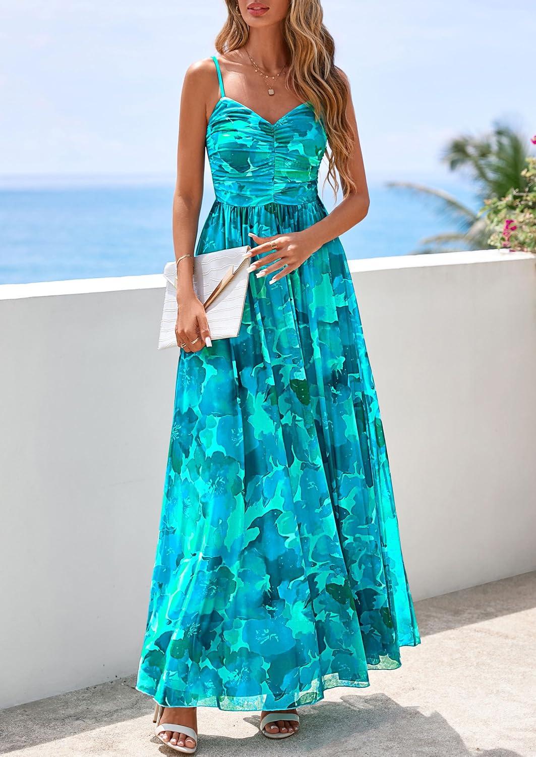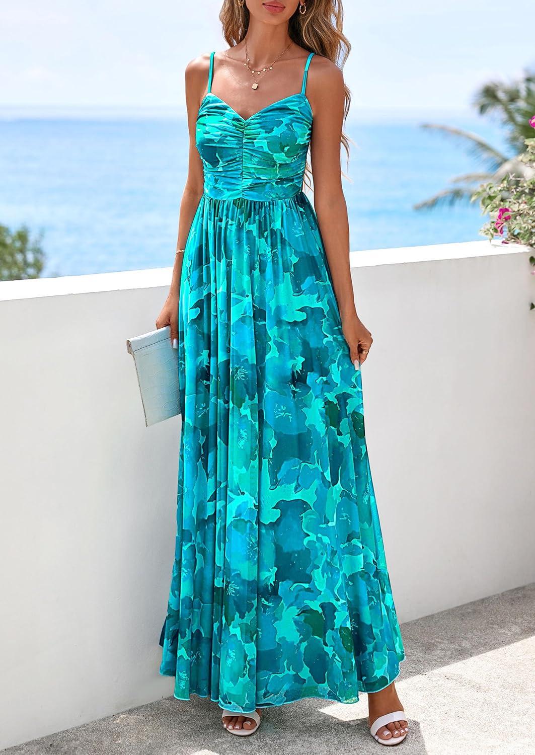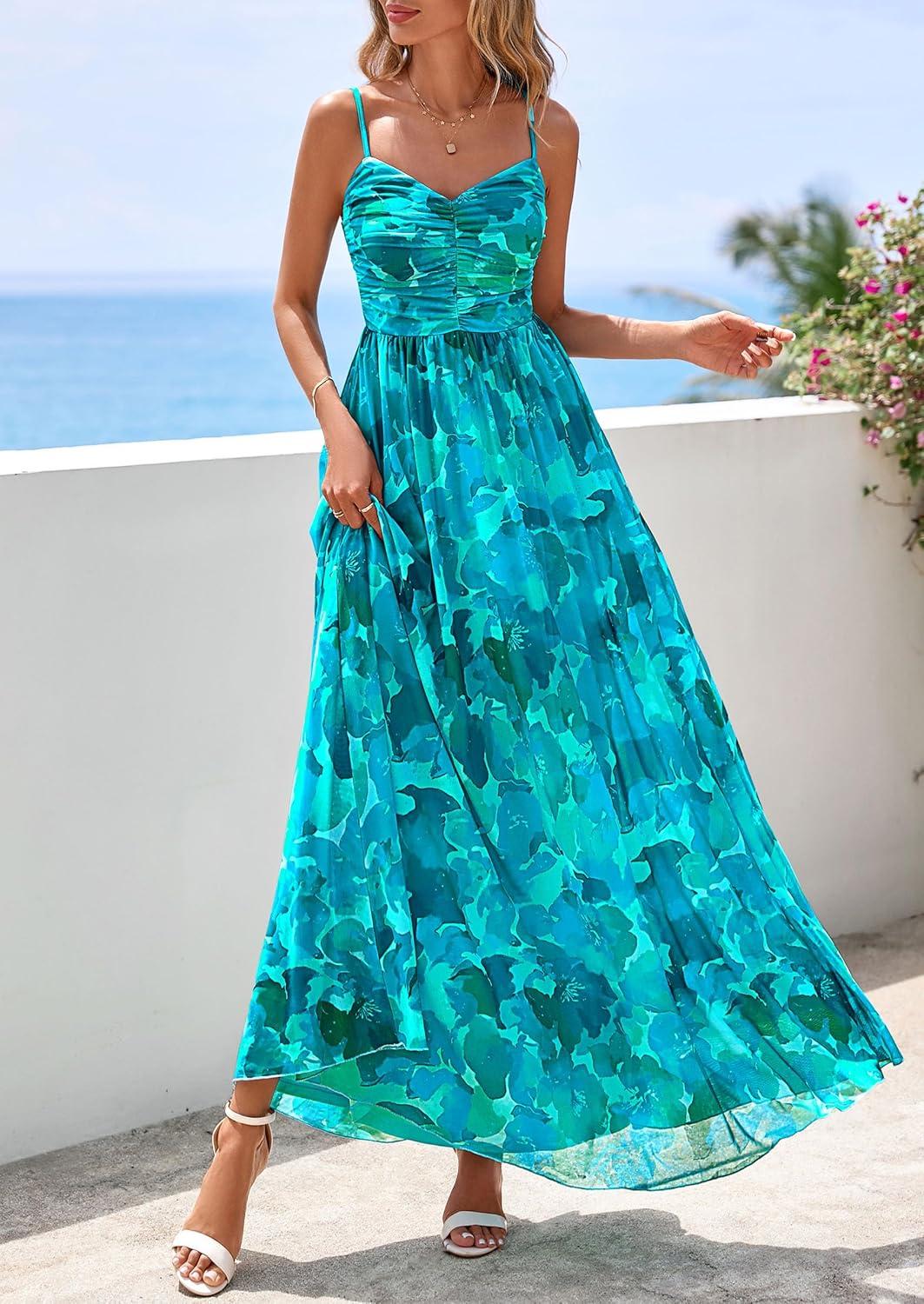 PRETTYGARDEN Women’s Floral Maxi Dress Summer Outfits 2026 Spaghetti Strap Flowy Long Sundress Beach Vacation Boho Dresses(Green Floral)