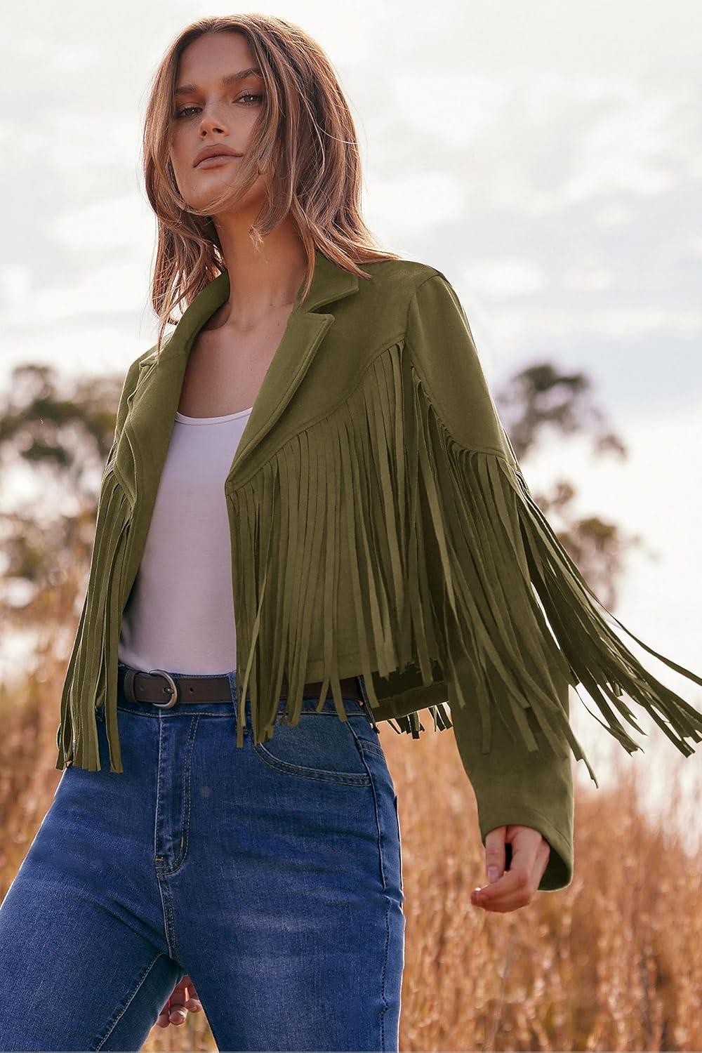PRETTYGARDEN Women's Fringe Faux Suede Leather Jackets Fall Fashion 2025 Tassel Motorcycle Cropped Coats(Dark Army Green)
