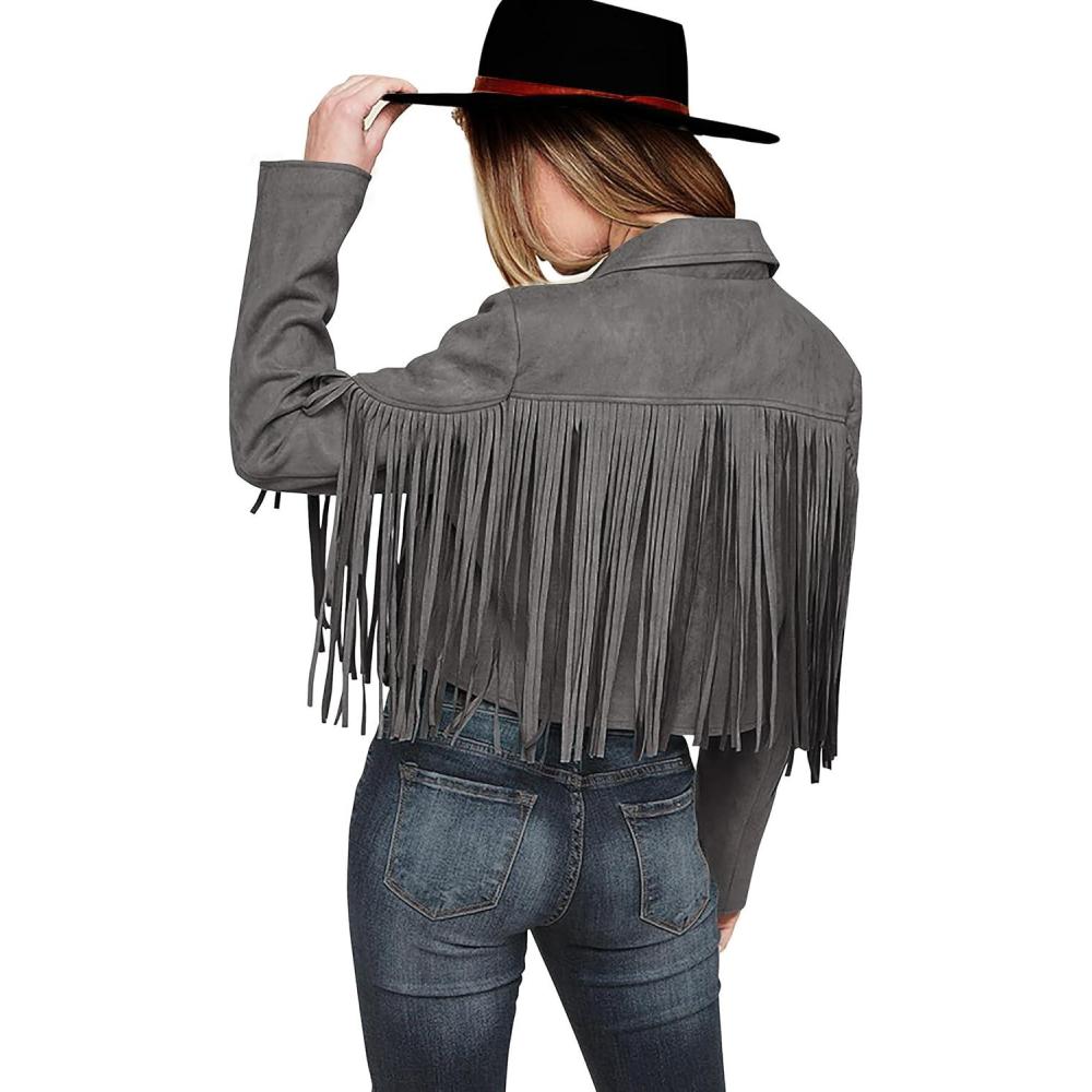 PRETTYGARDEN Women’s Fringe Faux Suede Leather Jackets Fall Fashion 2025 Tassel Motorcycle Cropped Coats(Silver Grey)