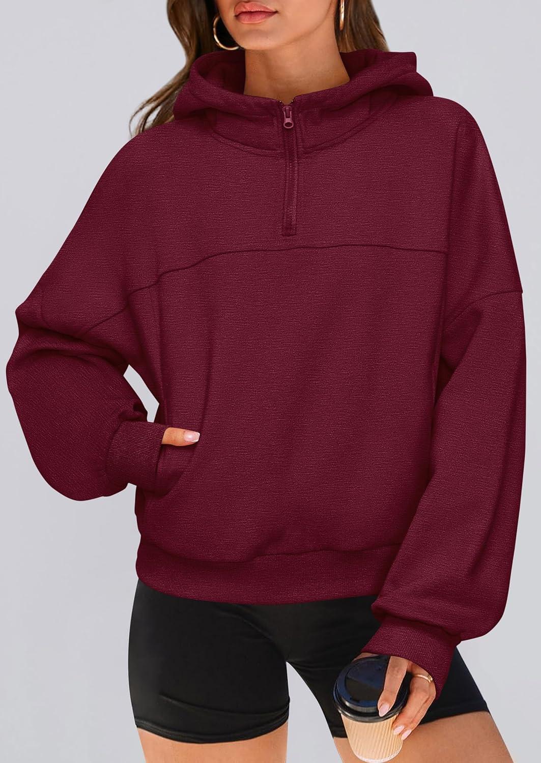PRETTYGARDEN Womens Hoodies Cropped Fleece Sweatshirts 2025 Fall Fashion Quarter Zip Pullover Long Sleeve Tops Winter Clothes(Burgundy)