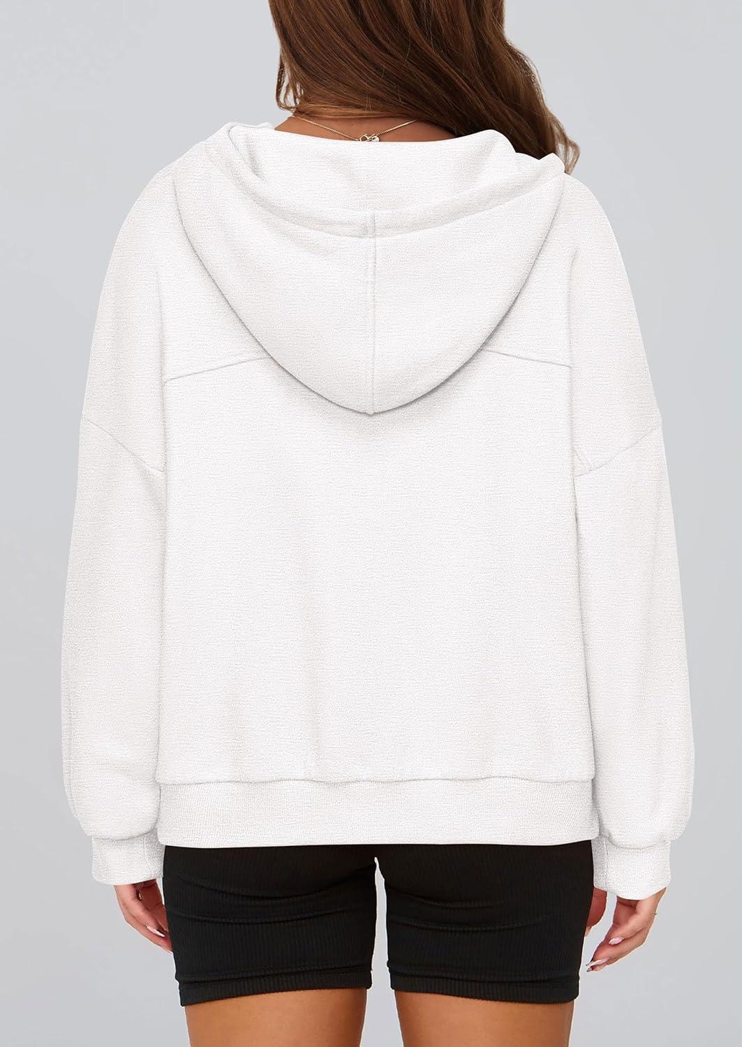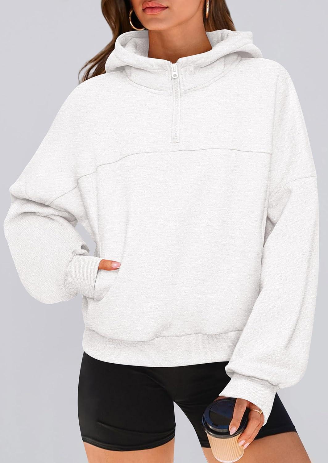 PRETTYGARDEN Womens Hoodies Cropped Fleece Sweatshirts 2025 Fall Fashion Quarter Zip Pullover Long Sleeve Tops Winter Clothes(White)