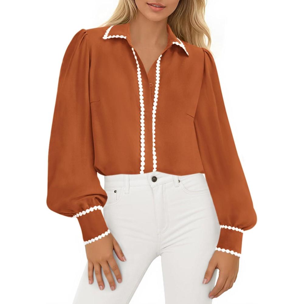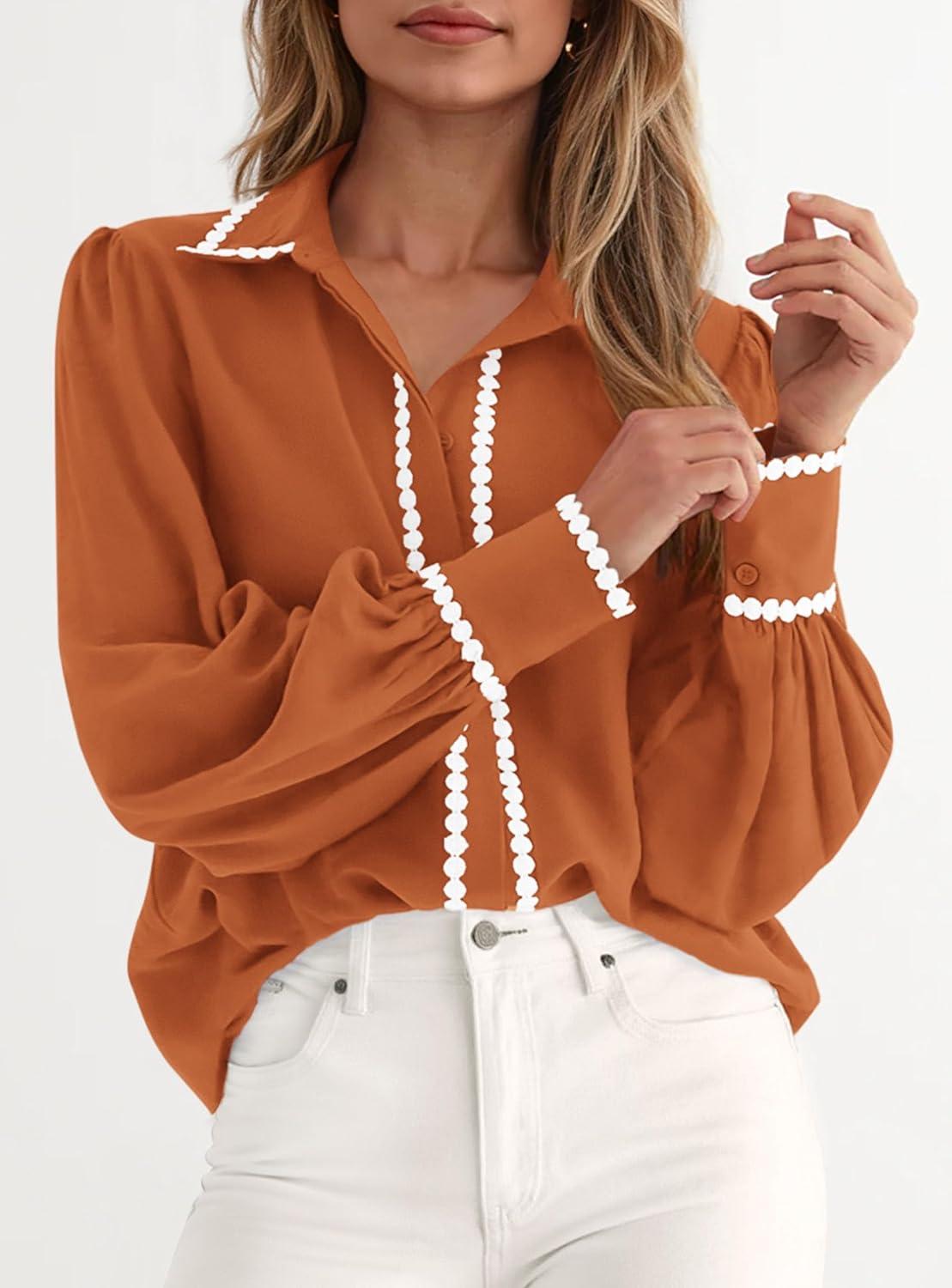 Our clearance event features the best deals on PRETTYGARDEN Womens Long Sleeve Button Down Shirts 2025 Trendy V Neck Loose Fit Fall Tops Collared Dressy Casual Blouses(Orange) and accessories. Shop now!