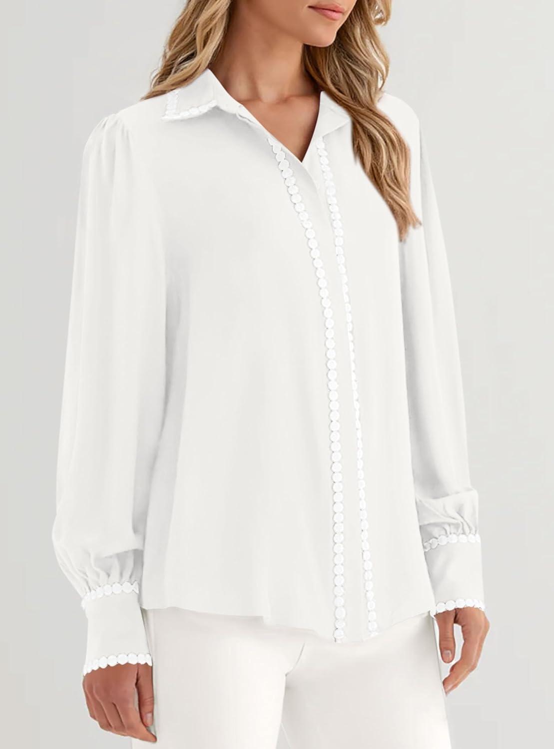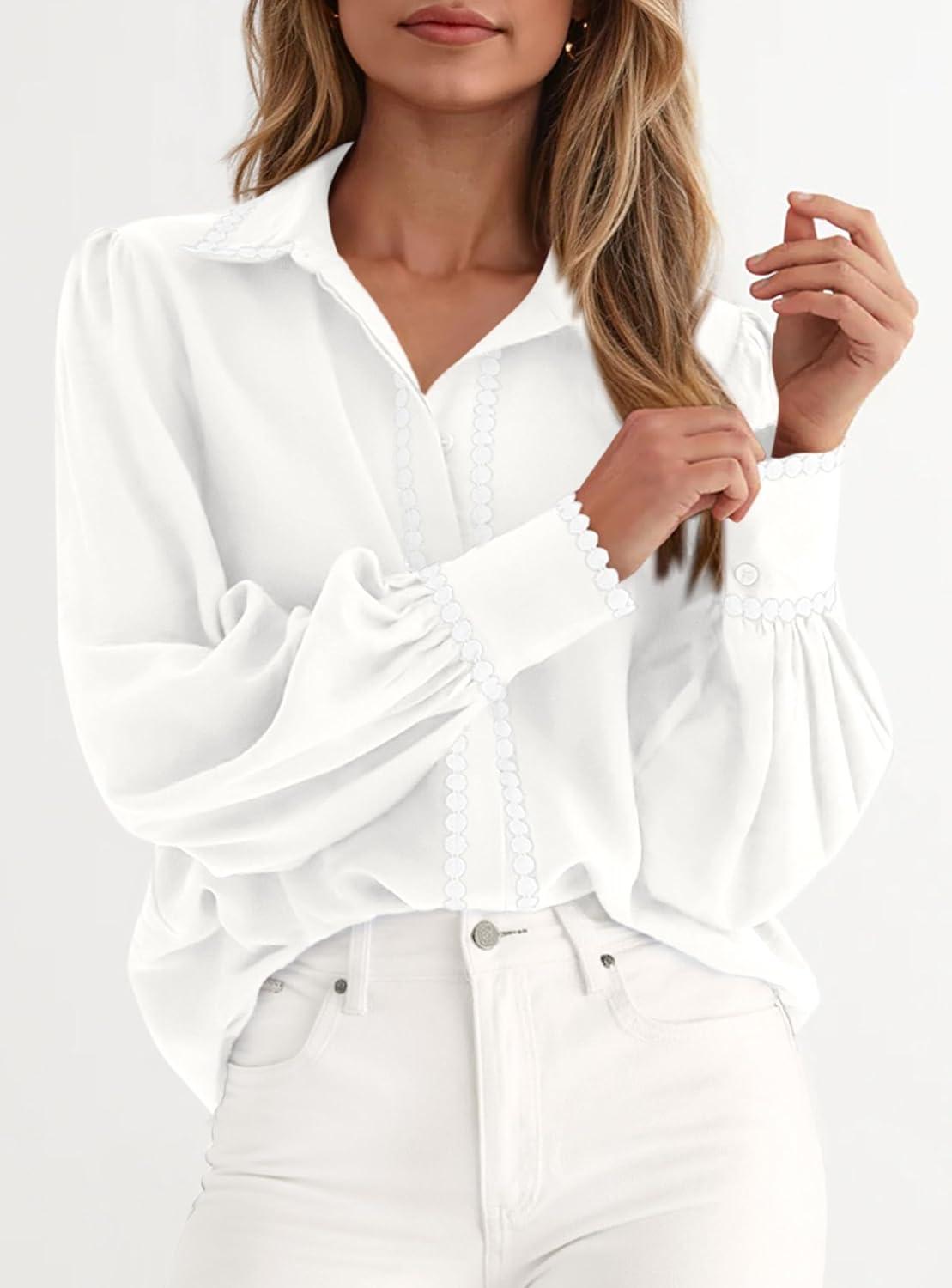 Get your hands on our newest PRETTYGARDEN Womens Long Sleeve Button Down Shirts 2025 Trendy V Neck Loose Fit Fall Tops Collared Dressy Casual Blouses(White) and enjoy a limited-time discount offer.
