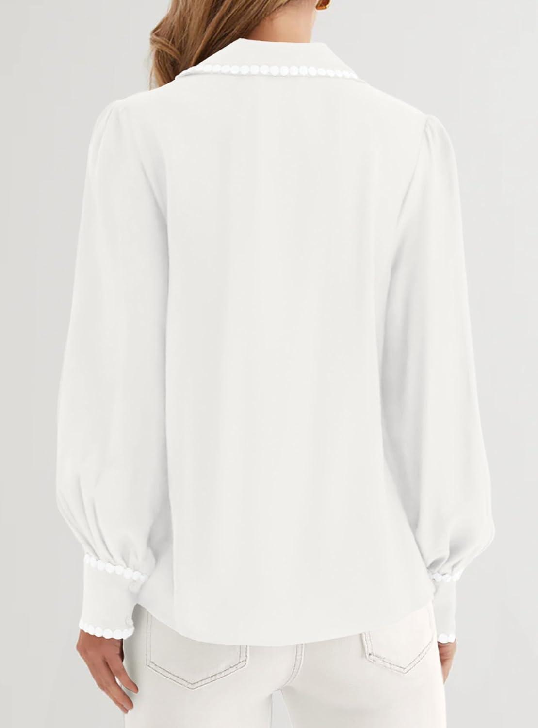 PRETTYGARDEN Womens Long Sleeve Button Down Shirts 2025 Trendy V Neck Loose Fit Fall Tops Collared Dressy Casual Blouses(White)