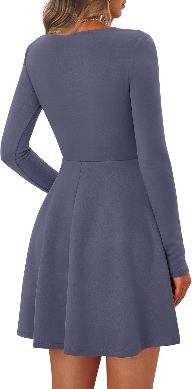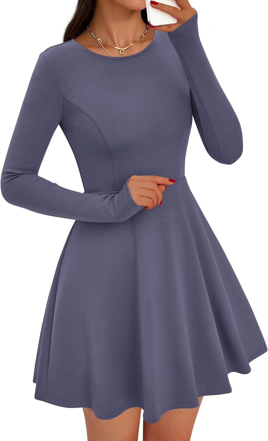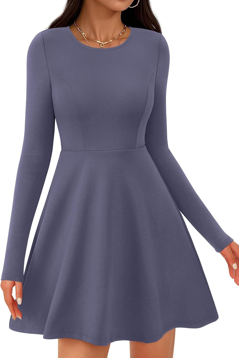 PRETTYGARDEN Womens Long Sleeve Cocktail Mini Dress 2025 Fall Crew Neck A Line Homecoming Party Short Dresses Elegant Classy(Grey Blue)