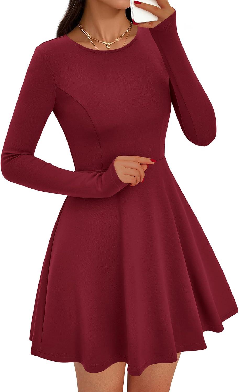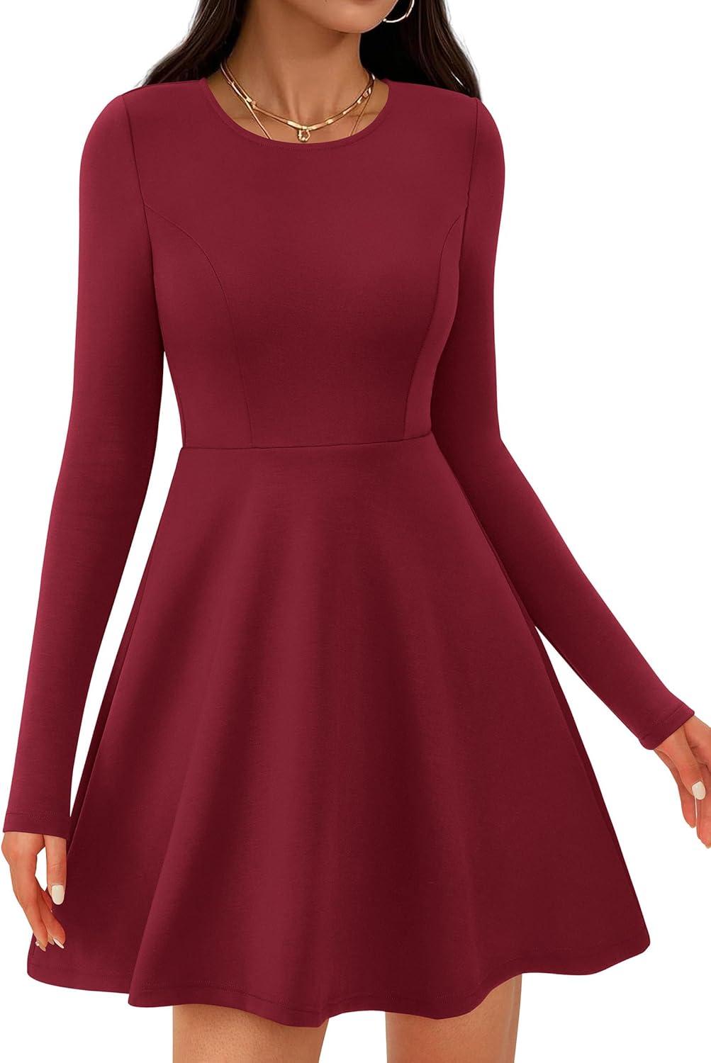PRETTYGARDEN Womens Long Sleeve Cocktail Mini Dress 2025 Fall Crew Neck A Line Homecoming Party Short Dresses Elegant Classy(Wine Red)