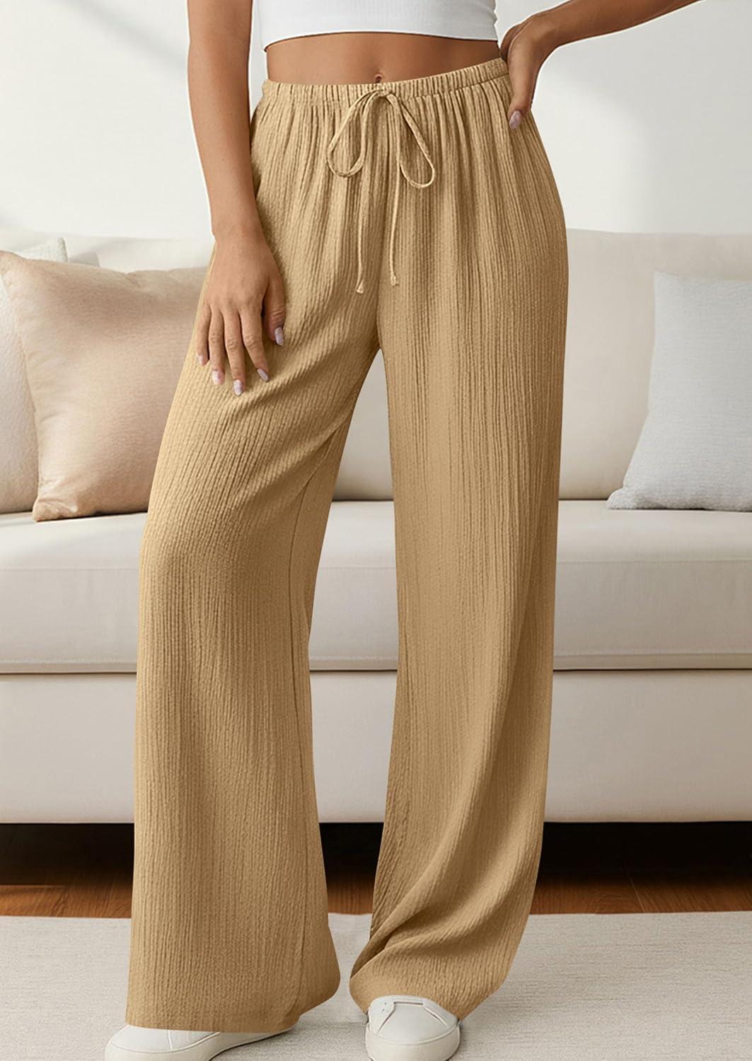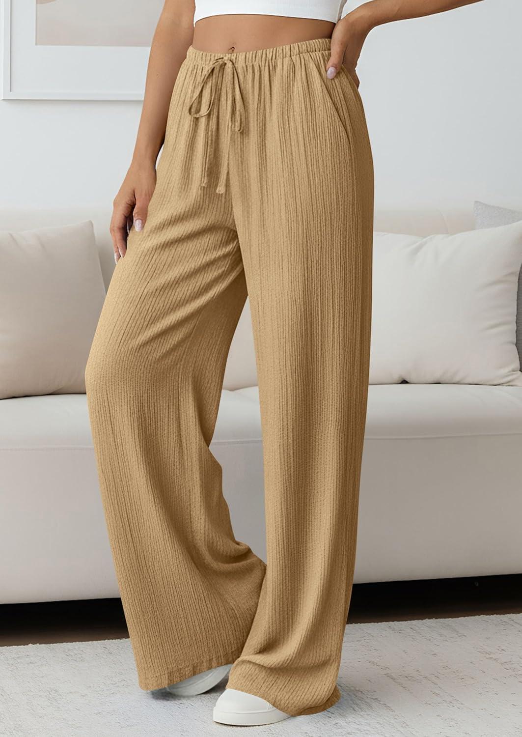 PRETTYGARDEN Womens Palazzo Pants Summer Fashion 2026 High Waisted Wide Leg Drawstring Flowy Beach Trousers with Pockets(Khaki)