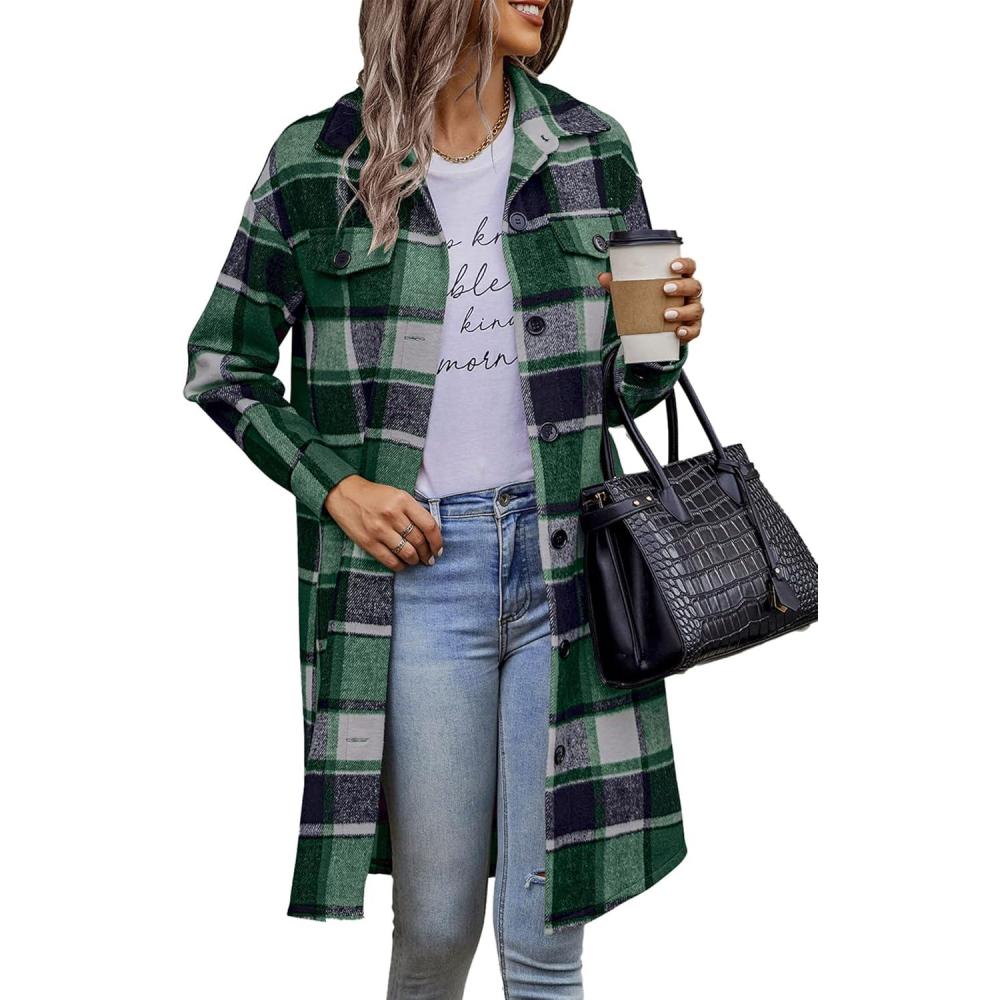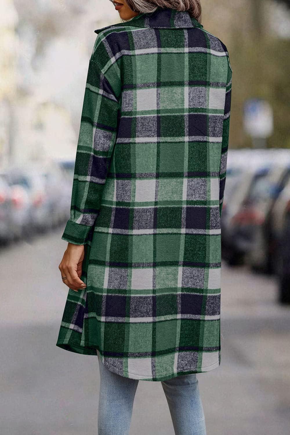 PRETTYGARDEN Womens Plaid Shacket Jacket Fall Fashion 2025 Long Sleeve Button Up Flannel Shirt Winter Clothing Woolen Coats(Green)