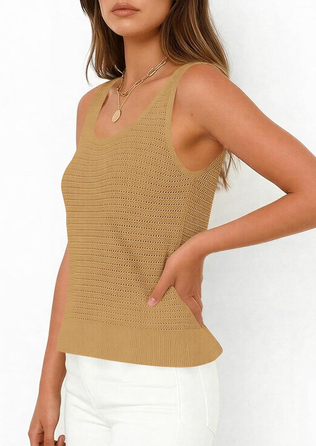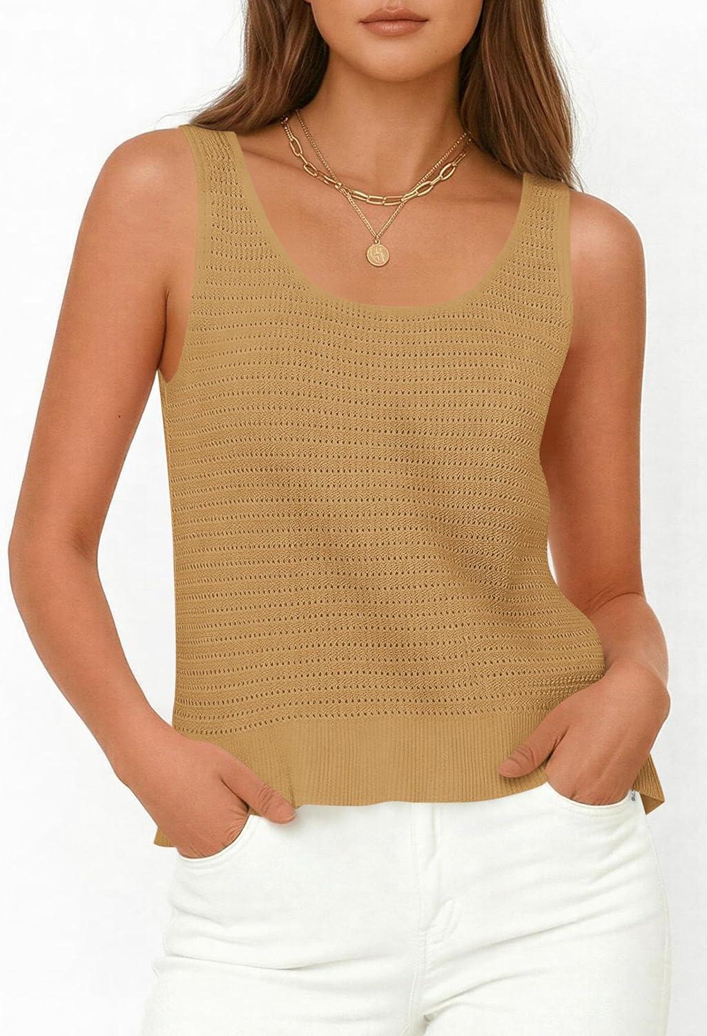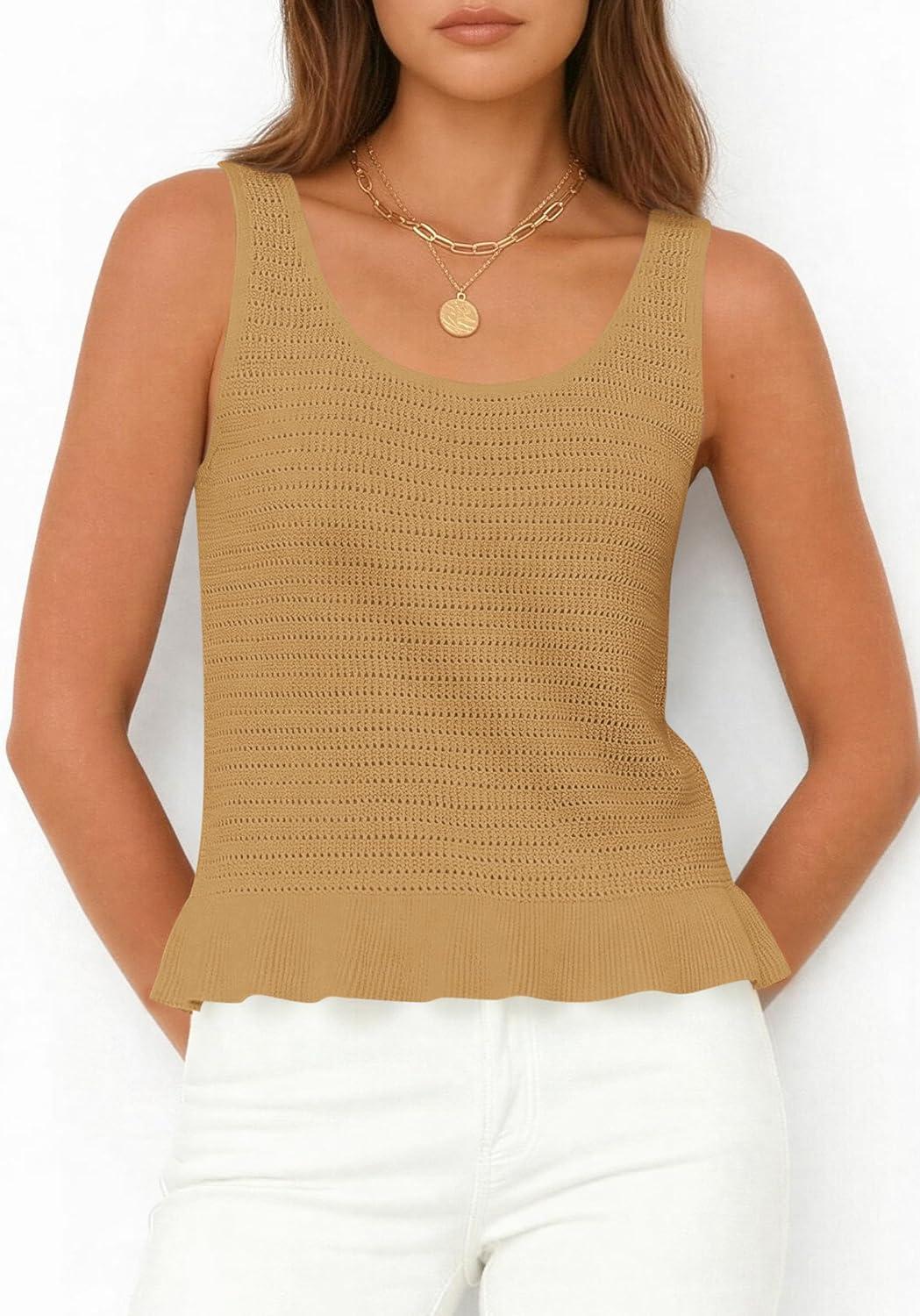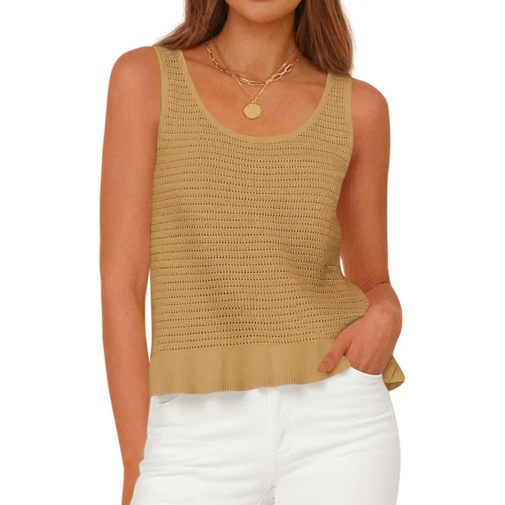 PRETTYGARDEN Womens Spring Crochet Tops 2026 Summer Sleeveless Scoop Neck Boho Sweater Tank Top Cute Beach Vacation Clothes(Khaki)