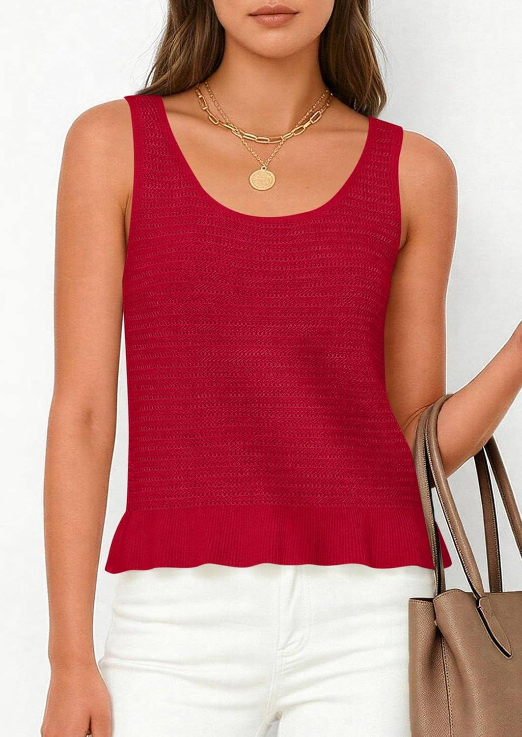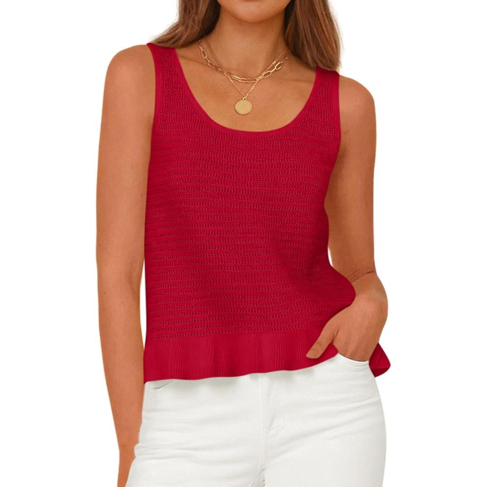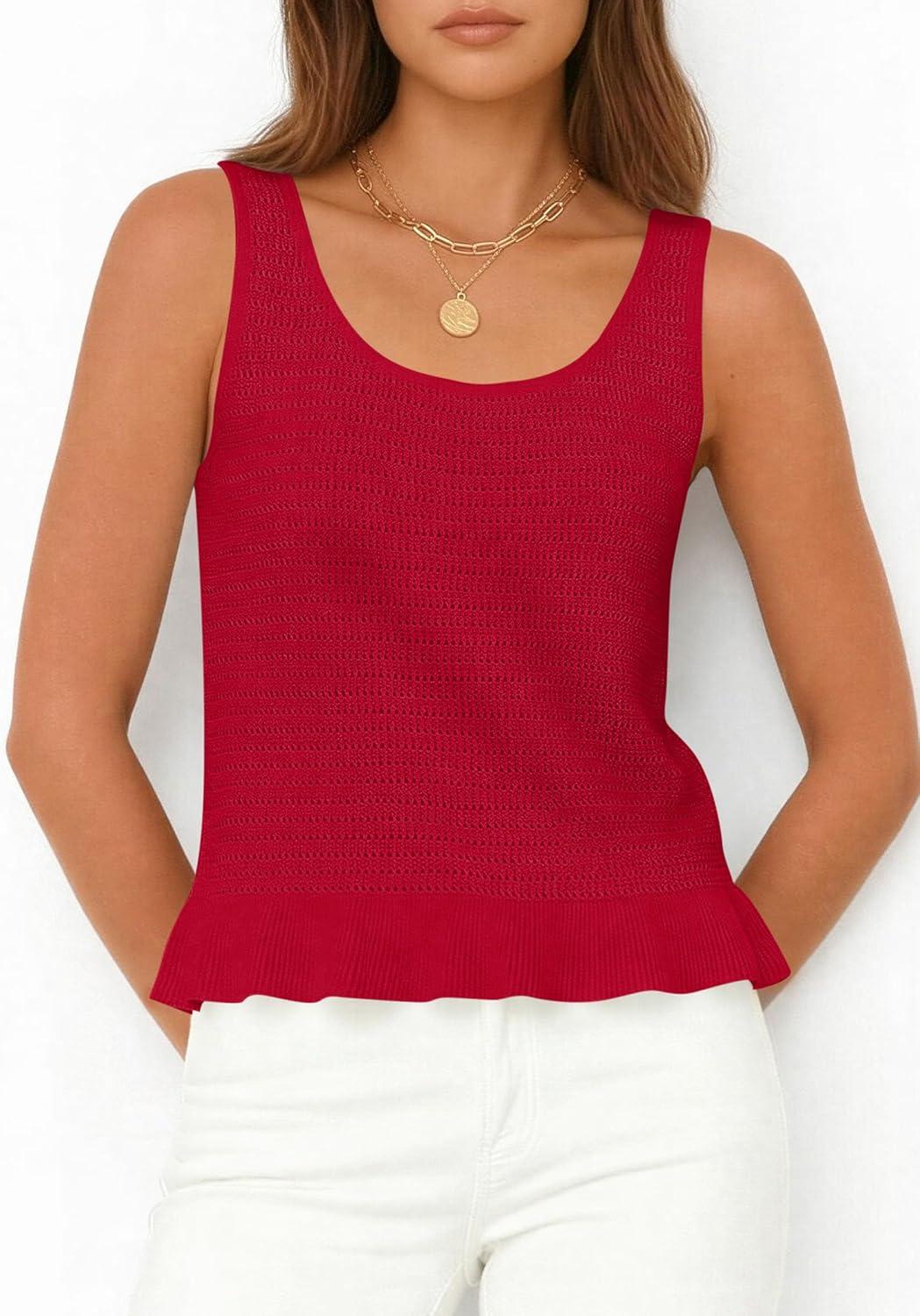 PRETTYGARDEN Womens Spring Crochet Tops 2026 Summer Sleeveless Scoop Neck Boho Sweater Tank Top Cute Beach Vacation Clothes(Red)