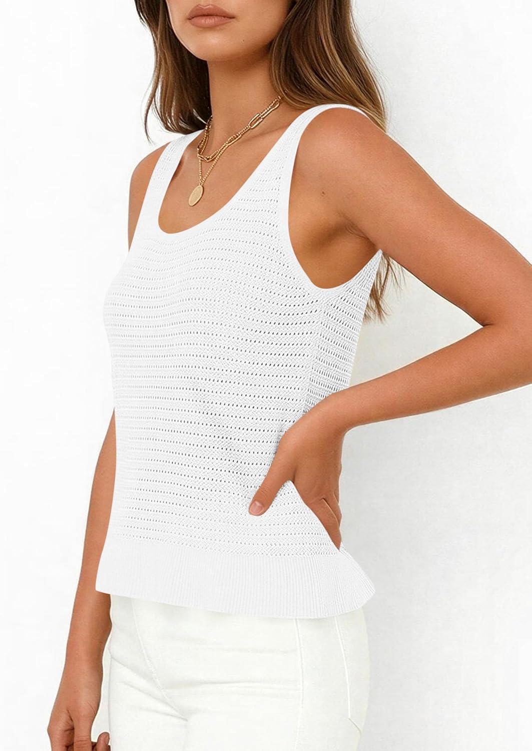 imagePRETTYGARDEN Womens Spring Crochet Tops 2026 Summer Sleeveless Scoop Neck Boho Sweater Tank Top Cute Beach Vacation ClothesWhite