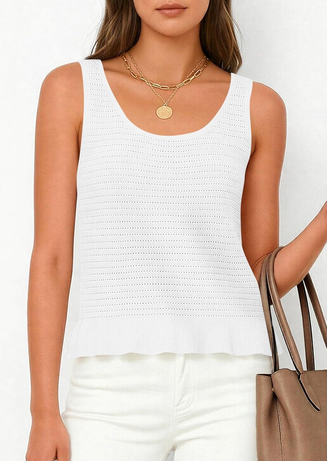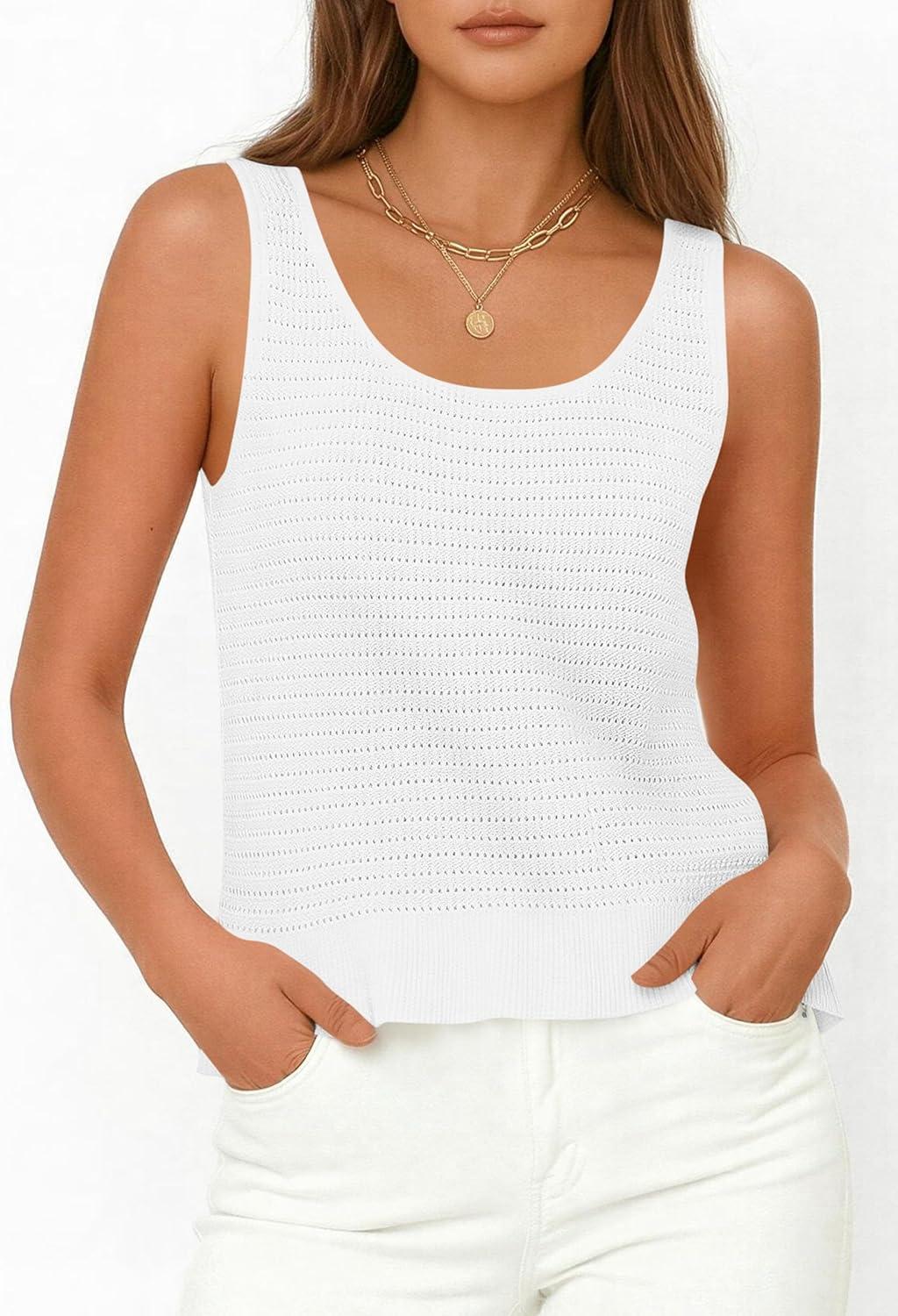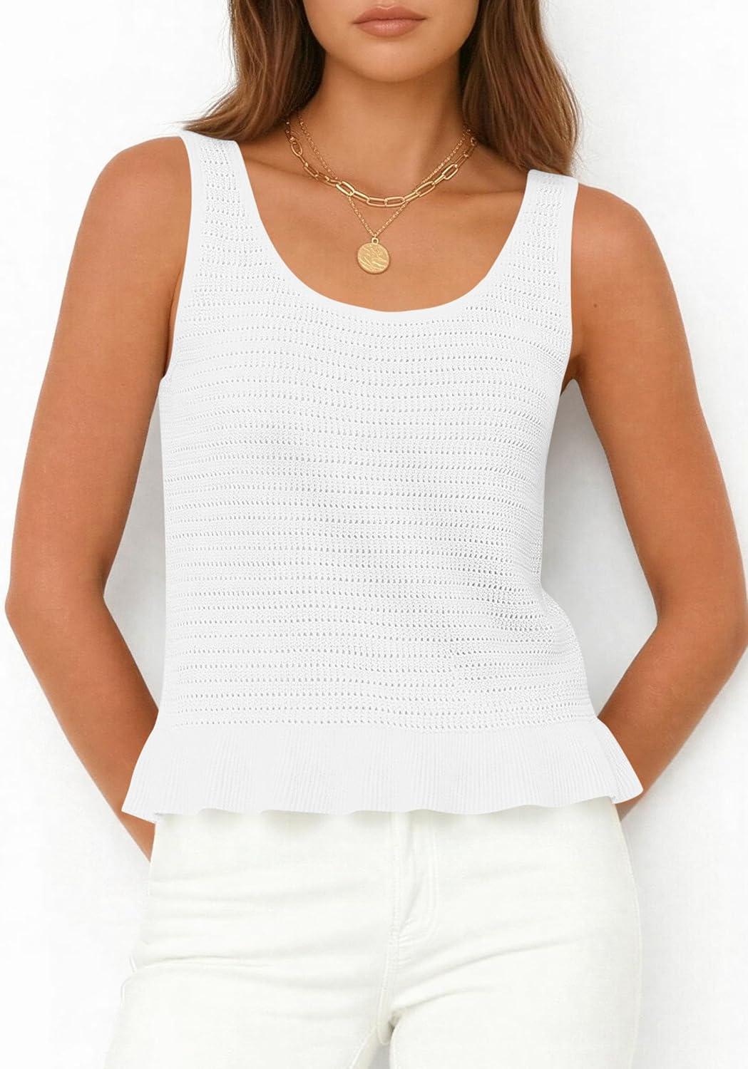 PRETTYGARDEN Womens Spring Crochet Tops 2026 Summer Sleeveless Scoop Neck Boho Sweater Tank Top Cute Beach Vacation Clothes(White)