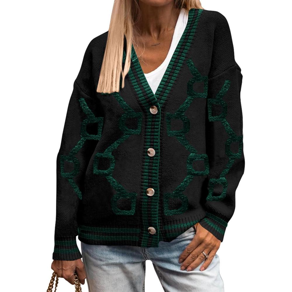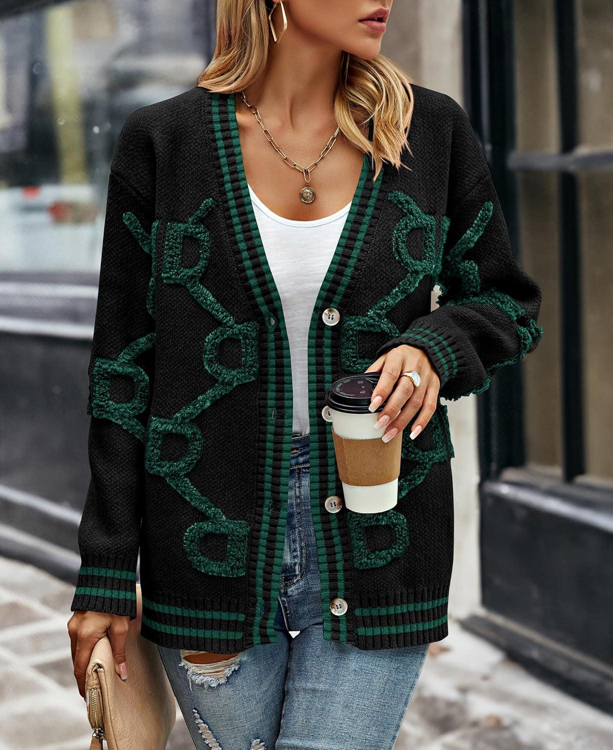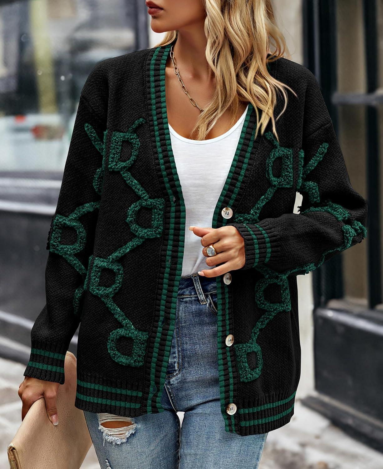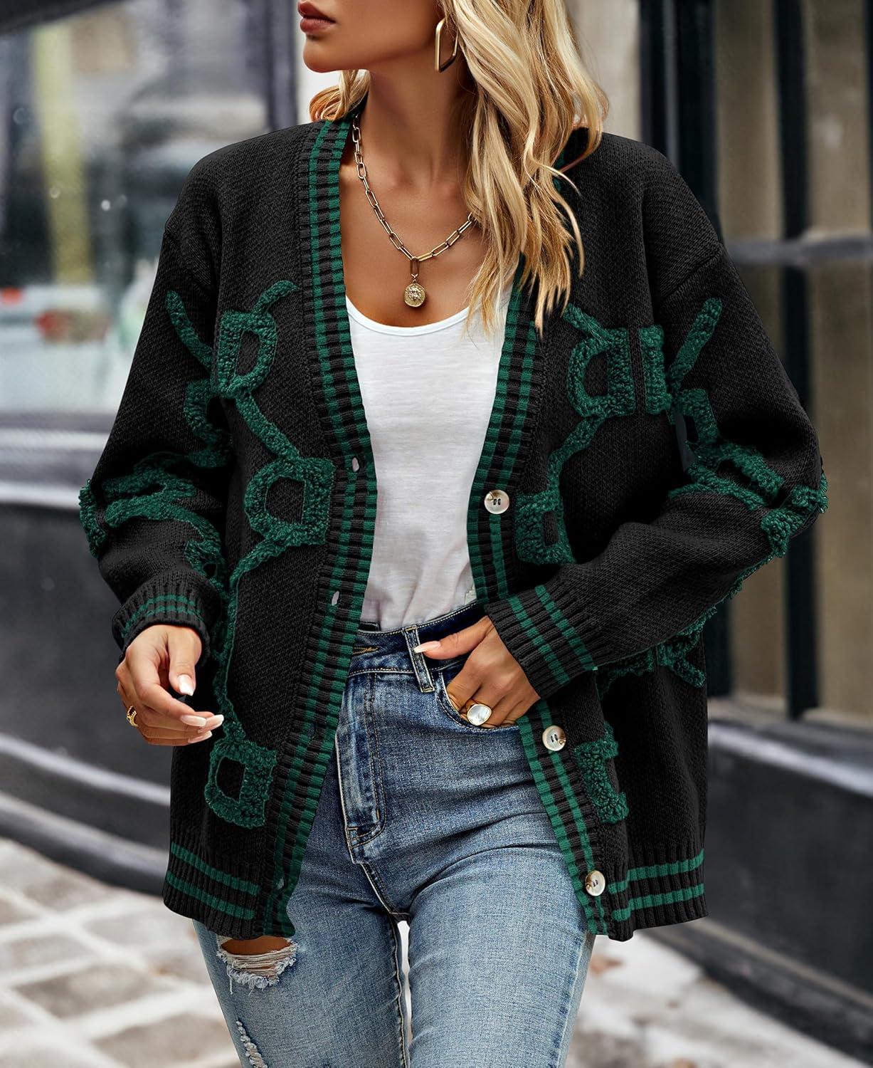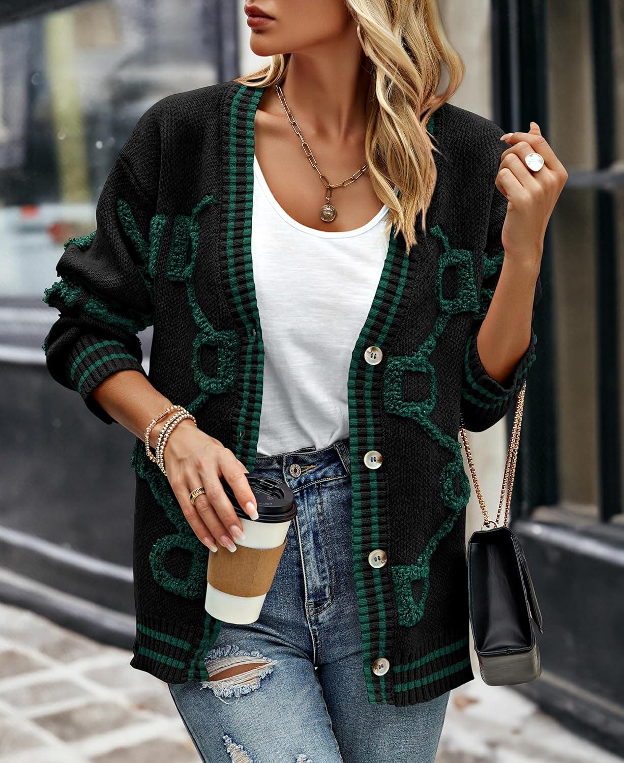 PRETTYGARDEN Women's Spring Fall Chunky Knit Cardigan Sweaters Casual Open Front Button Up Winter Coats Outerwear(Black Green)