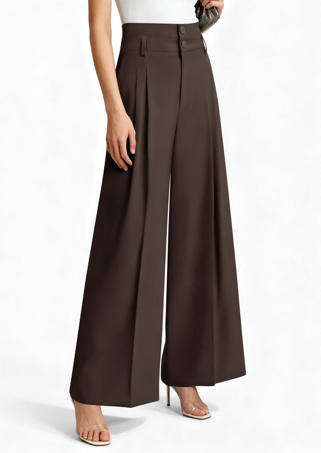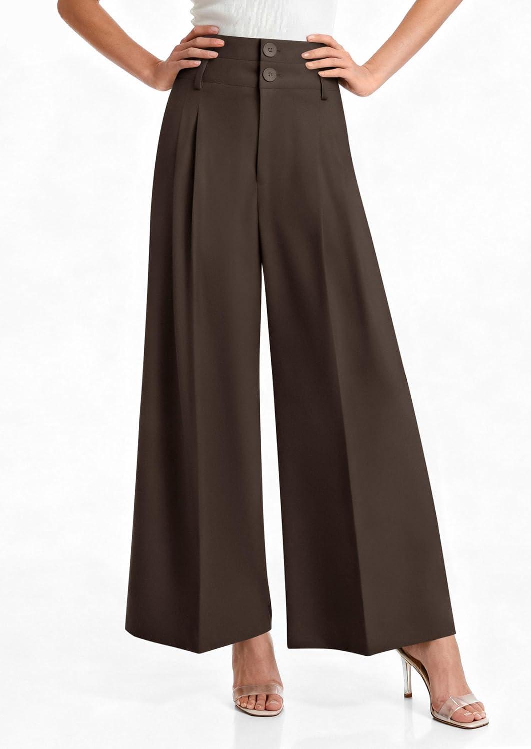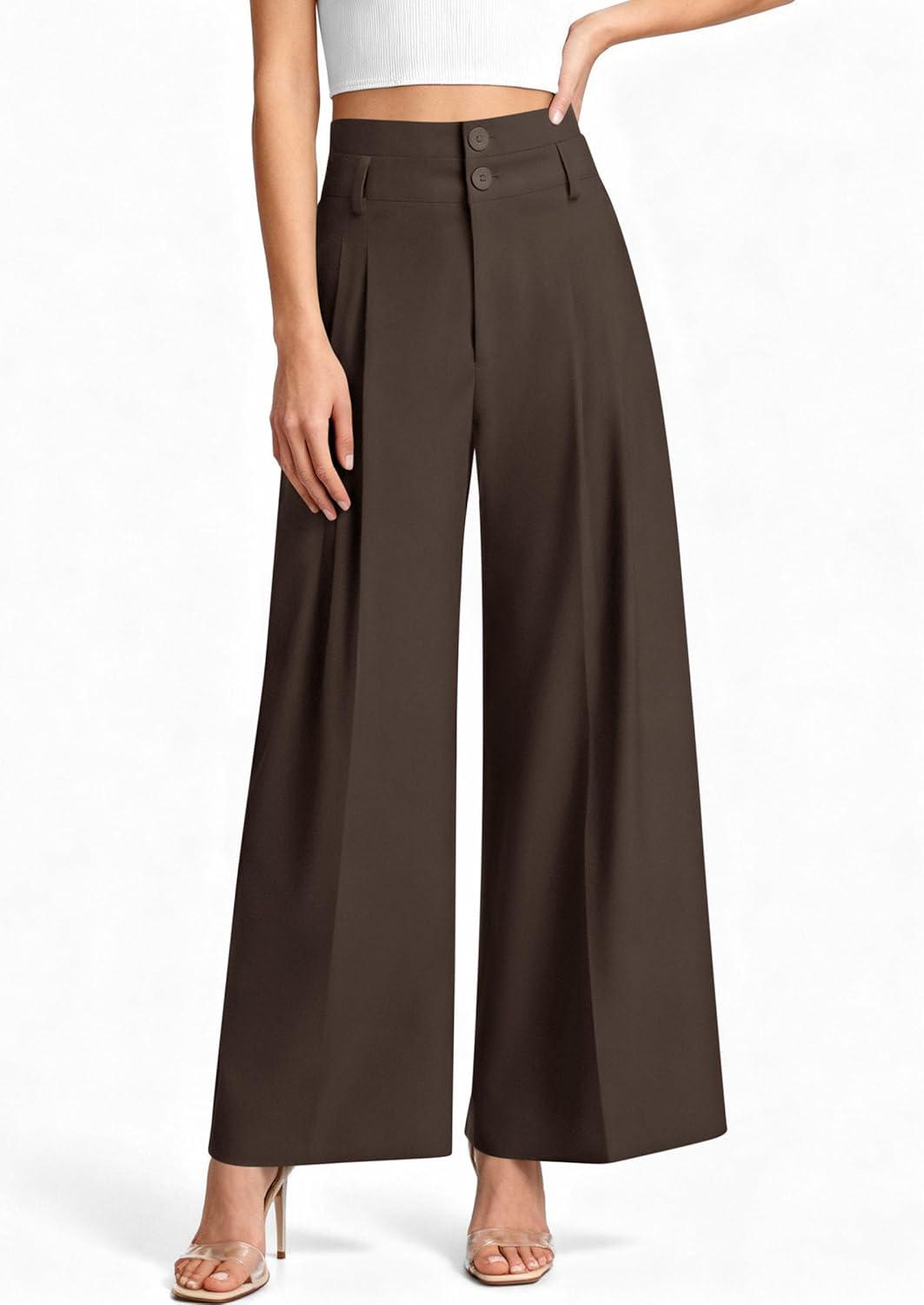 PRETTYGARDEN Womens Spring Wide Leg Palazzo Pants 2026 Trendy Loose Button High Waist Pleated Work Business Casual Trousers(Brown)