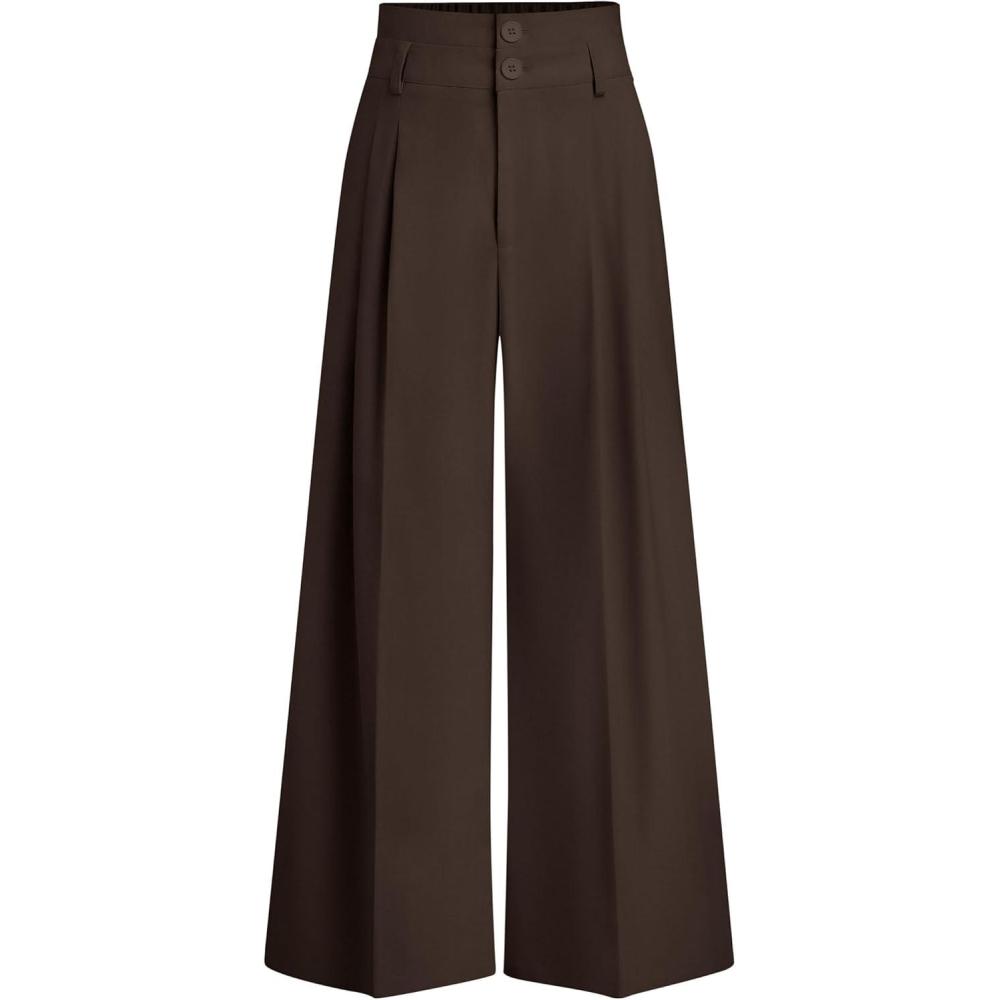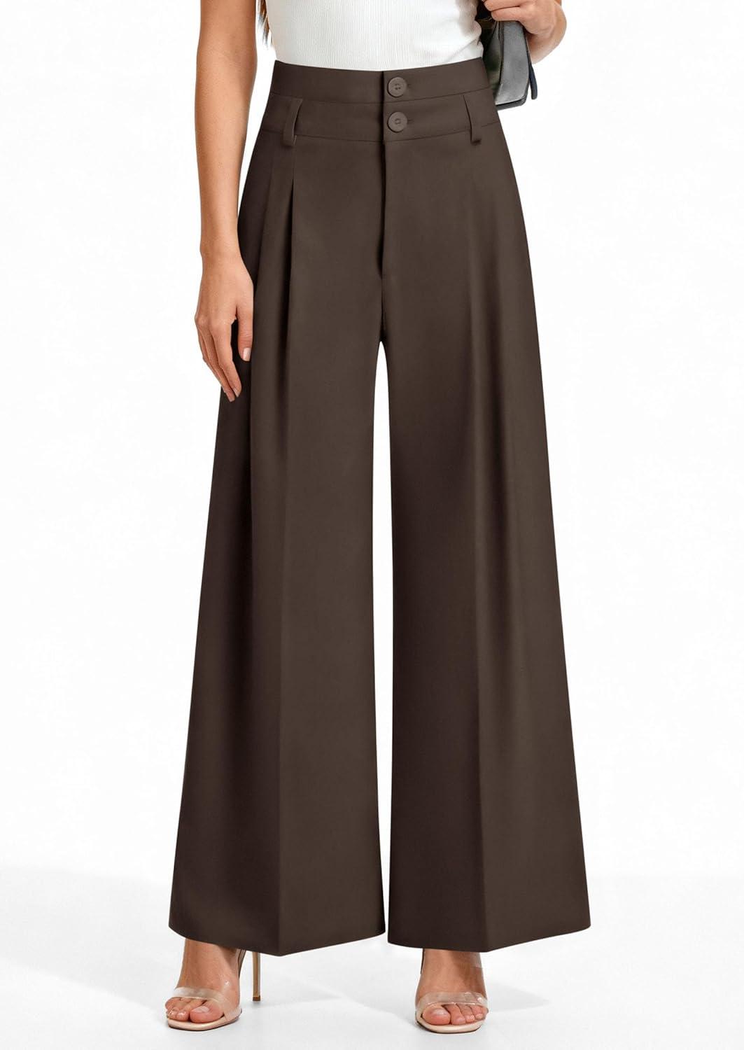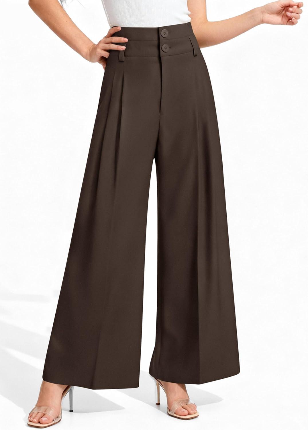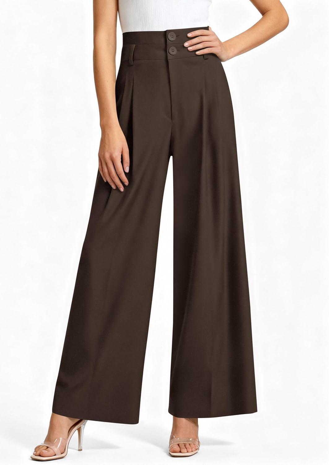 PRETTYGARDEN Womens Spring Wide Leg Palazzo Pants 2026 Trendy Loose Button High Waist Pleated Work Business Casual Trousers(Brown)