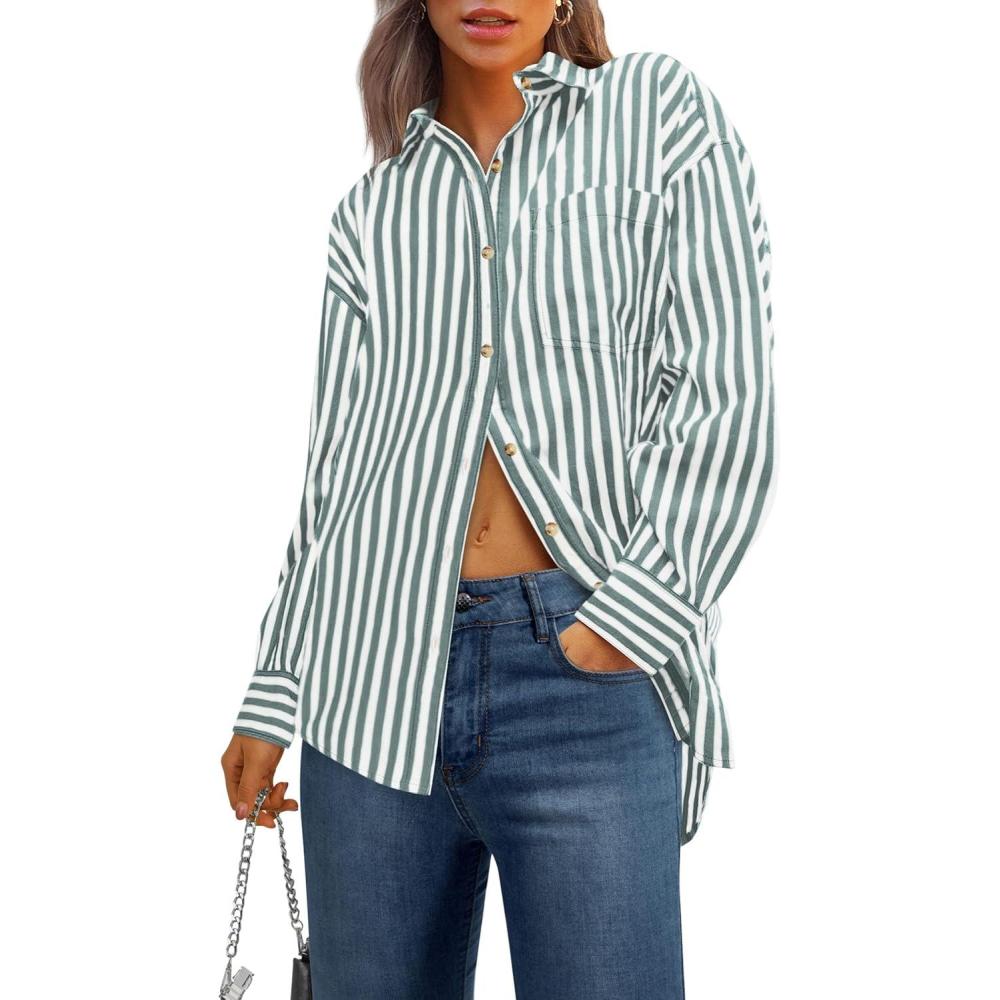 Be the first to review “PRETTYGARDEN Womens Striped Button Down Shirt Spring 2025 Oversized Collared Long Sleeve Office Work Blouses Tops(Green)”