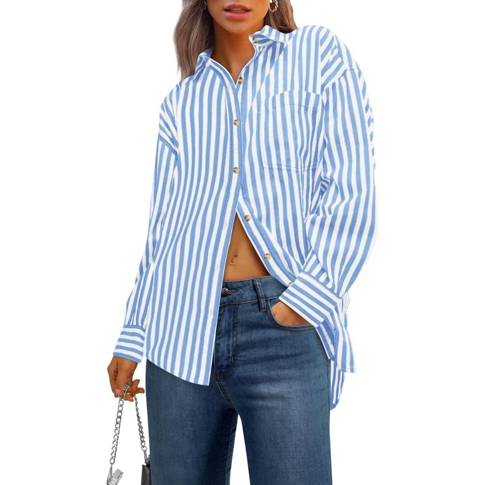 Be the first to review “PRETTYGARDEN Womens Striped Button Down Shirt Spring 2025 Oversized Collared Long Sleeve Office Work Blouses Tops(Sky Blue)”