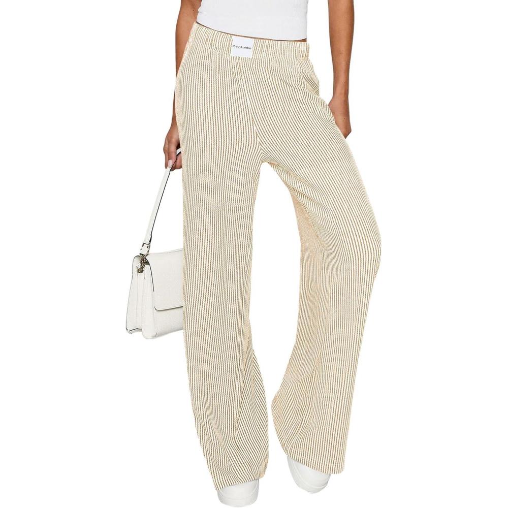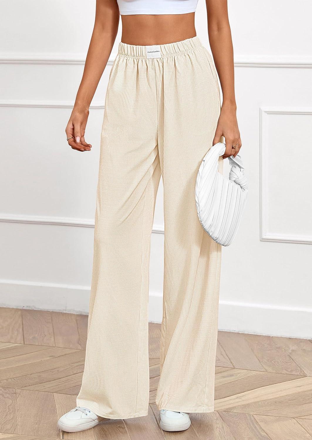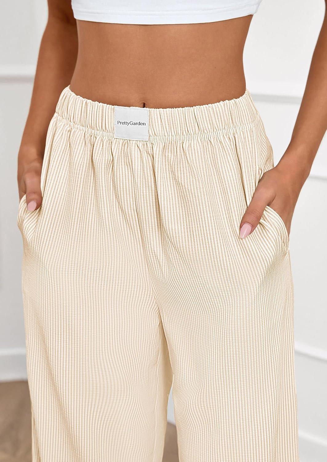 PRETTYGARDEN Women's Striped Pajama Pants 2025 Fall Fashion Clothing Lounge Sleep Pj Bottoms Comfy Casual Wide Leg Trousers(Apricot)