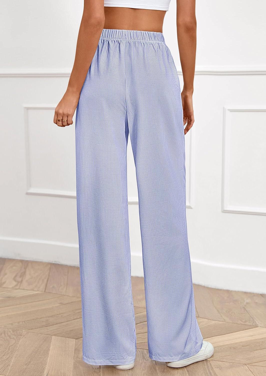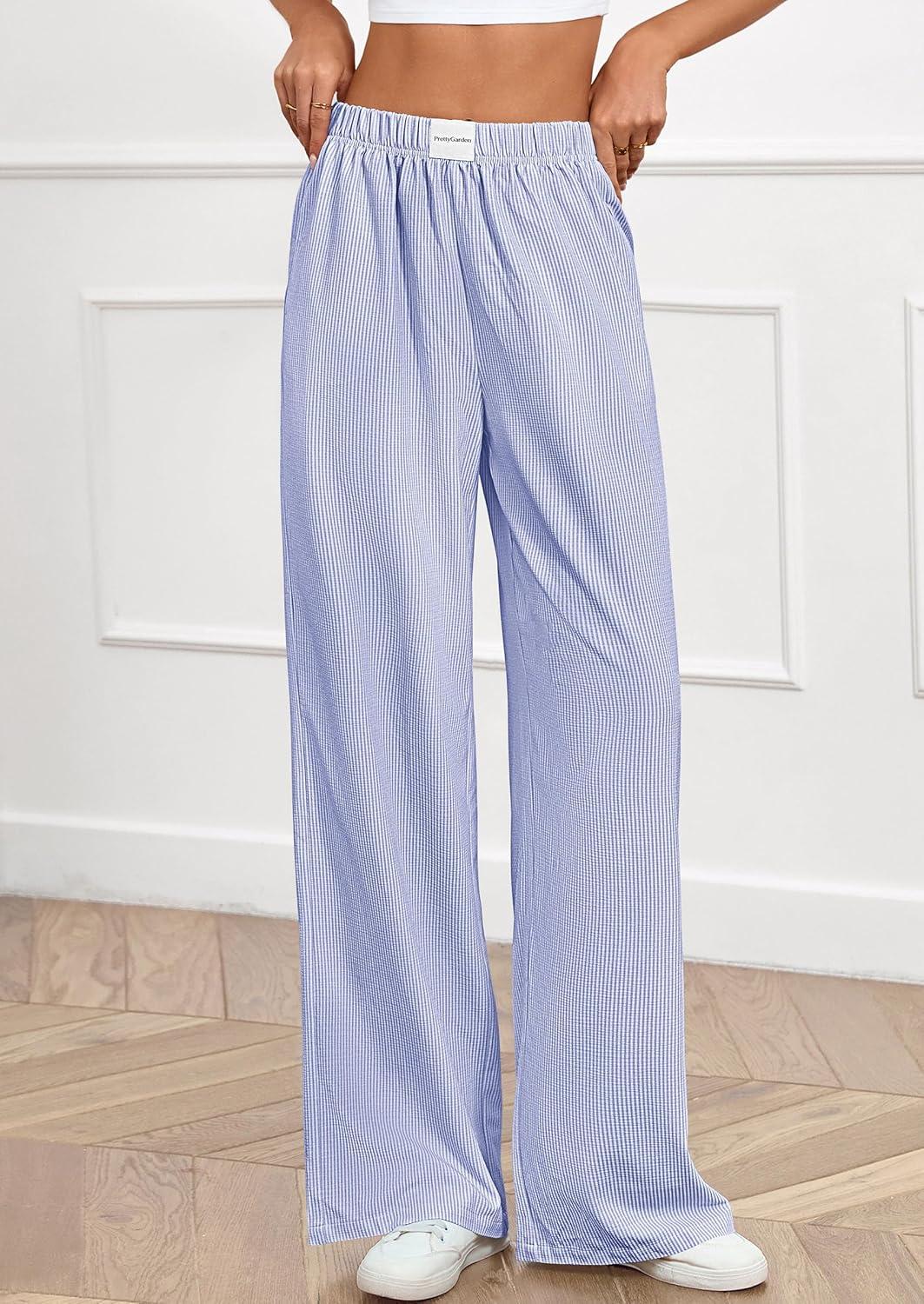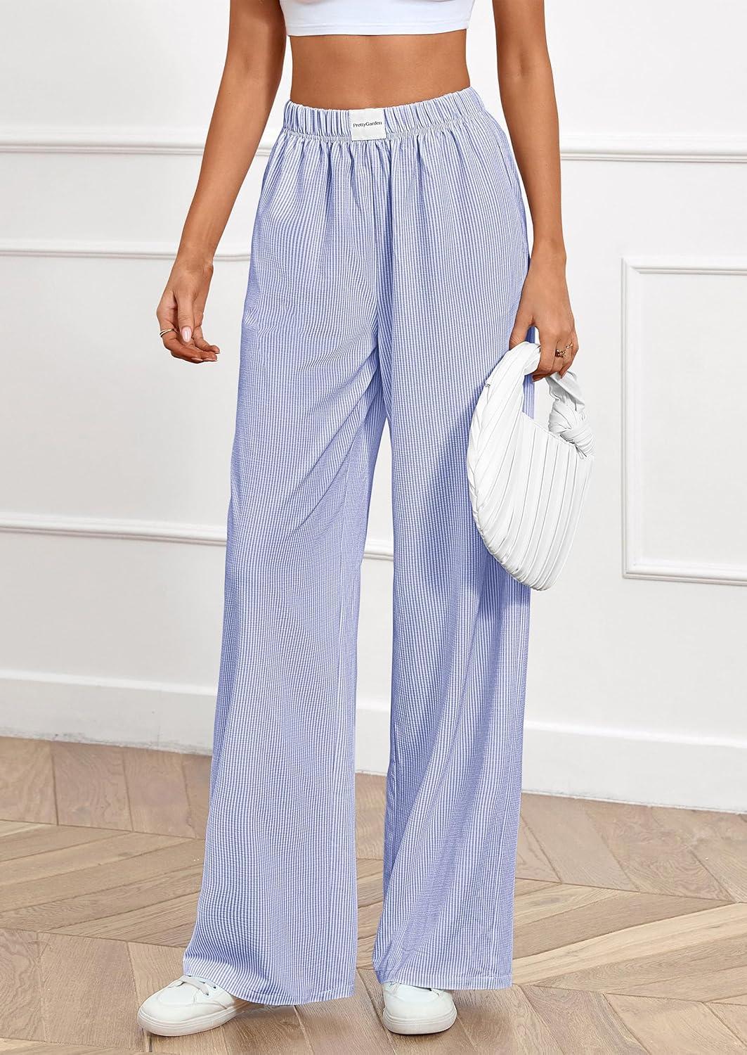 PRETTYGARDEN Women’s Striped Pajama Pants 2025 Fall Fashion Clothing Lounge Sleep Pj Bottoms Comfy Casual Wide Leg Trousers(Navy Blue)