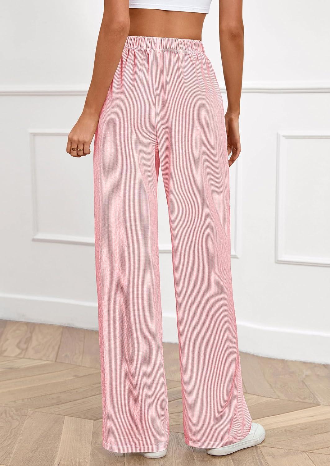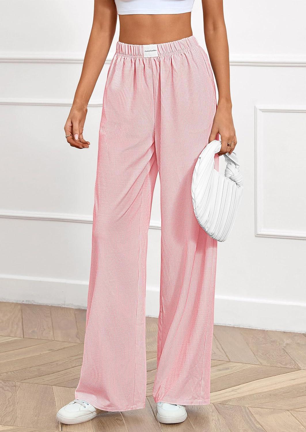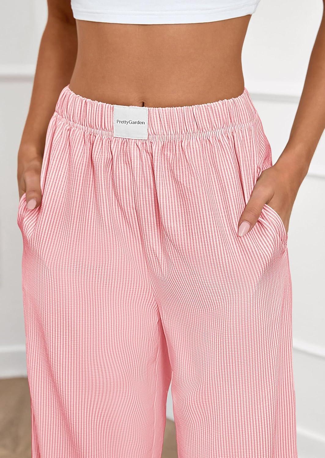 PRETTYGARDEN Women's Striped Pajama Pants 2025 Fall Fashion Clothing Lounge Sleep Pj Bottoms Comfy Casual Wide Leg Trousers(Red)