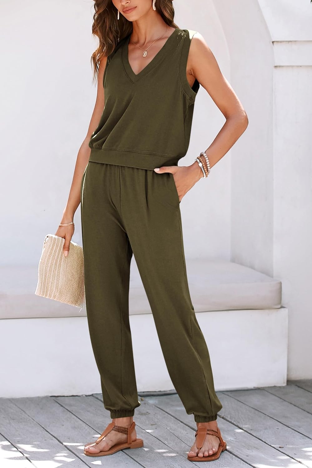 Don’t miss out on our limited-time offer: buy PRETTYGARDEN Women’s Summer 2 Piece Tracksuit V Neck Tank Top Jogger Sweatpants Set Casual Lounge Outfits, get {accessory} 50% off!