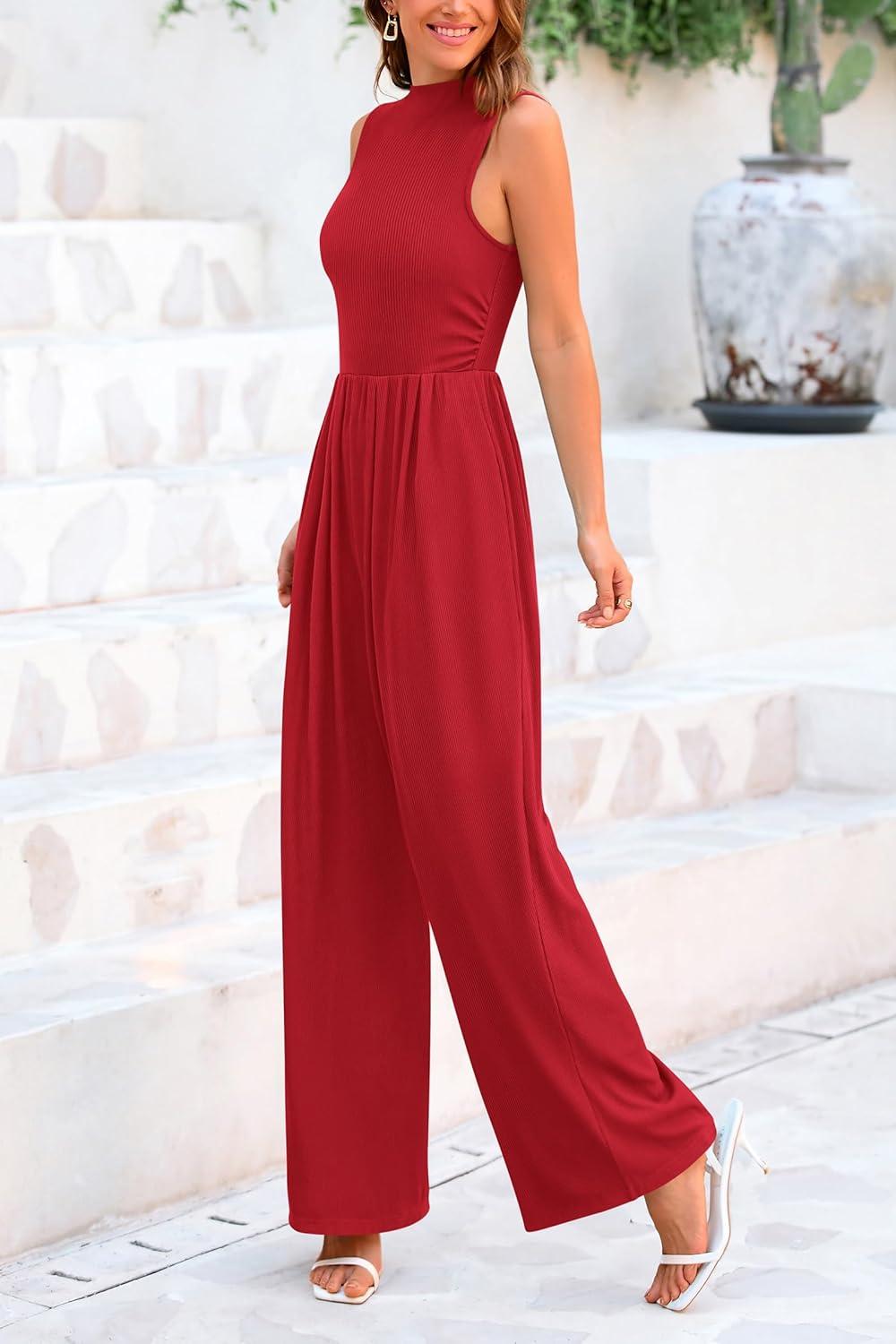 Get the PRETTYGARDEN Womens Summer Jumpsuits Dressy Casual One Piece Outfits Sleeveless Mock Neck Wide Leg Pants Rompers with Pockets(Red) you want at a discounted price during our markdown sale event.