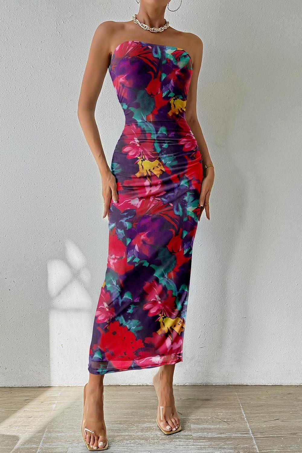 Get more for your money with our exclusive bundle deals on PRETTYGARDEN Women’s Summer Maxi Bodycon Dresses Strapless Tube Top Slit Floral Printed Party Club Long Dress(Navy Red Big Floral) and accessories.