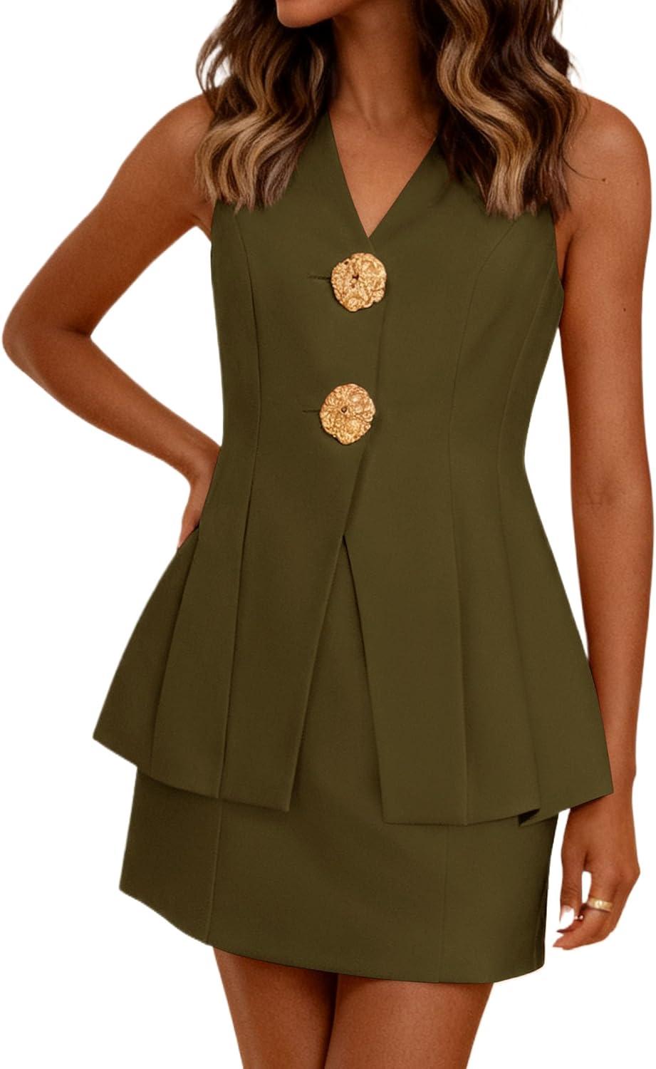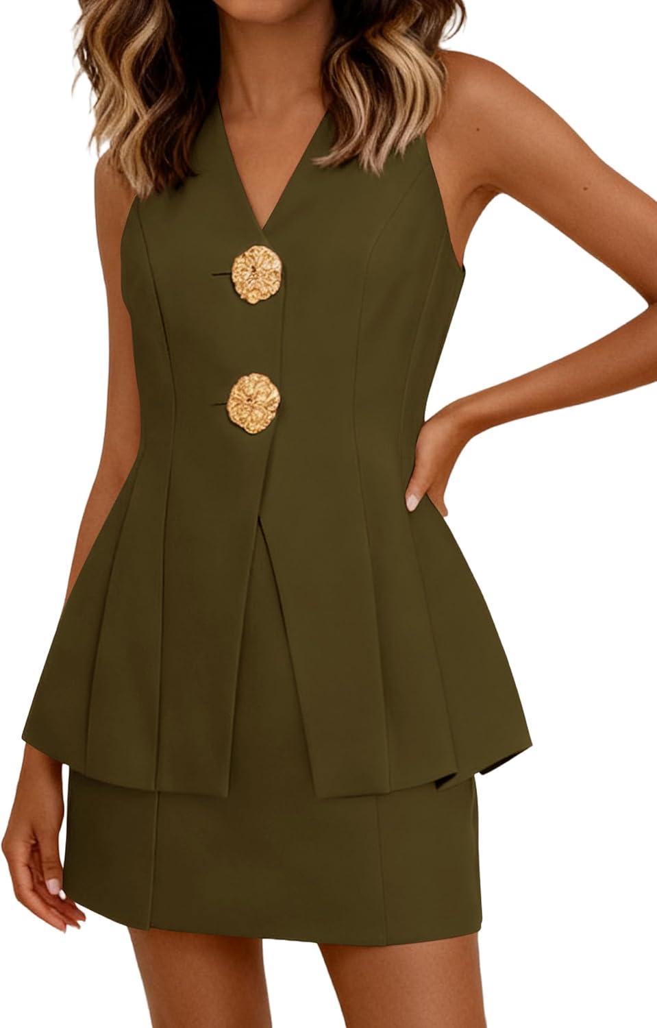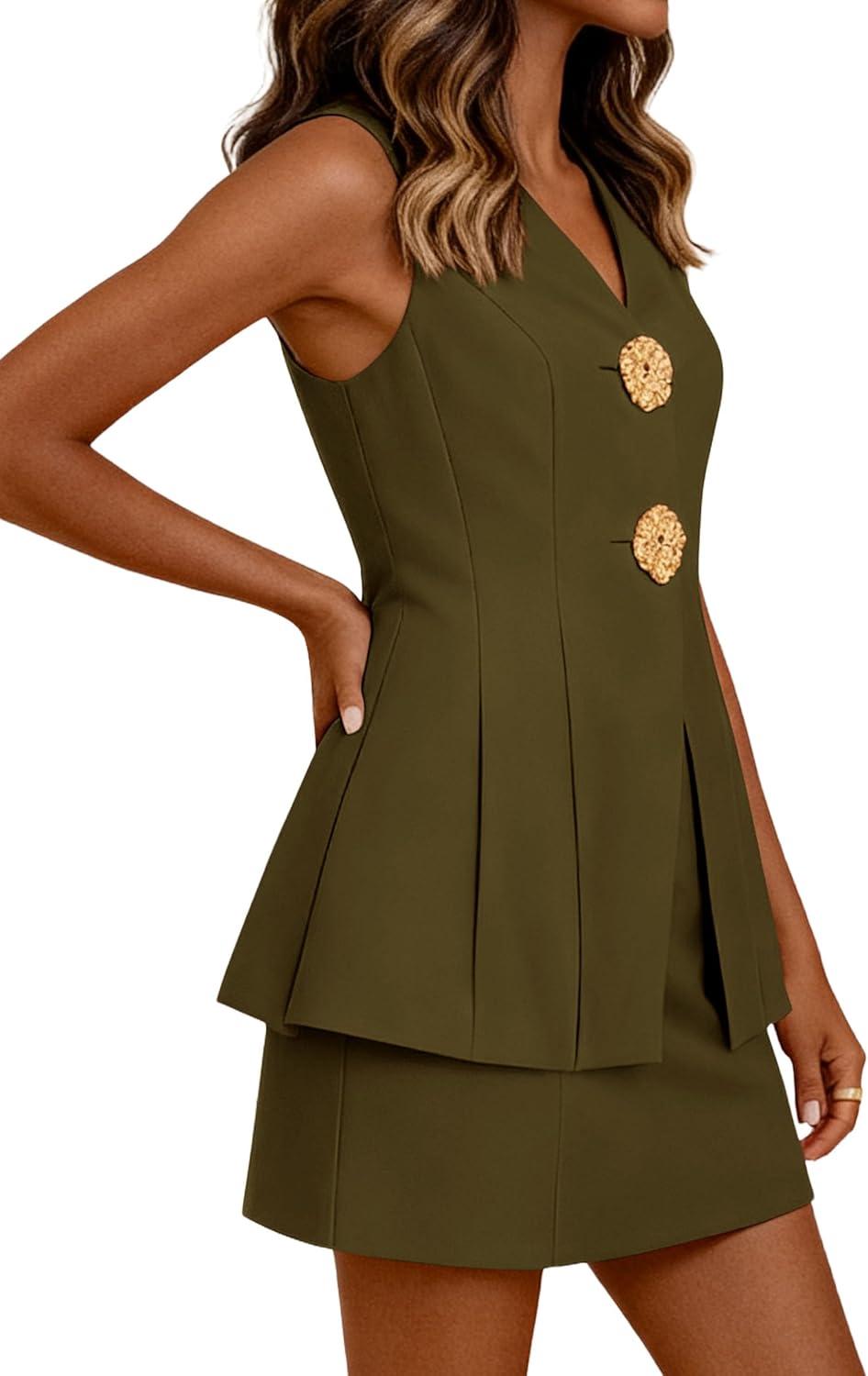 PRETTYGARDEN Womens Summer Sleeveless Blazer Vest Tops 2026 Trendy V Neck Button Down Business Casual Suit Vests Waistcoat(Army Green)