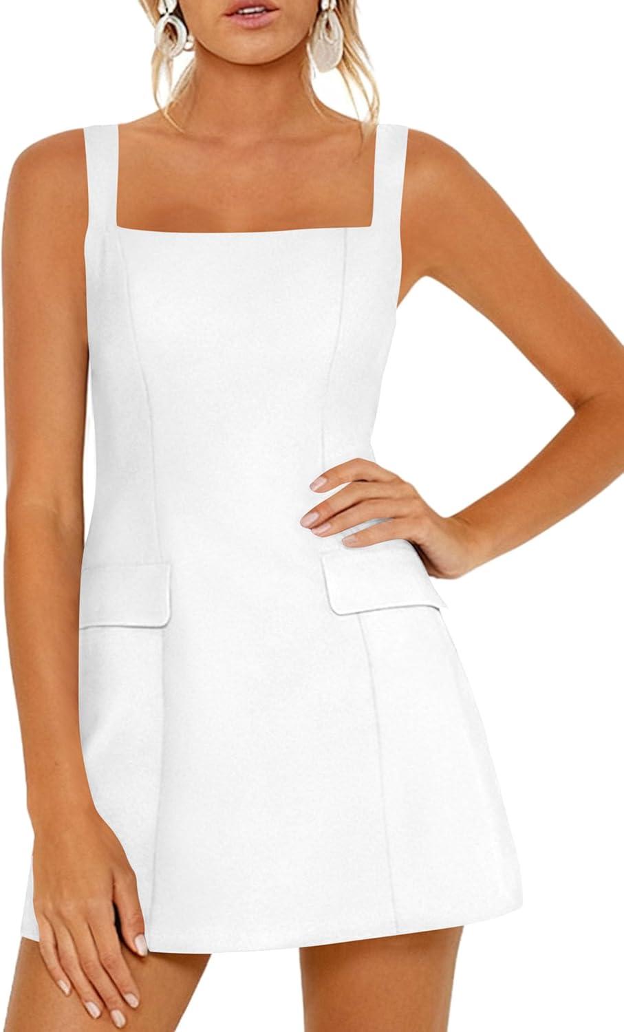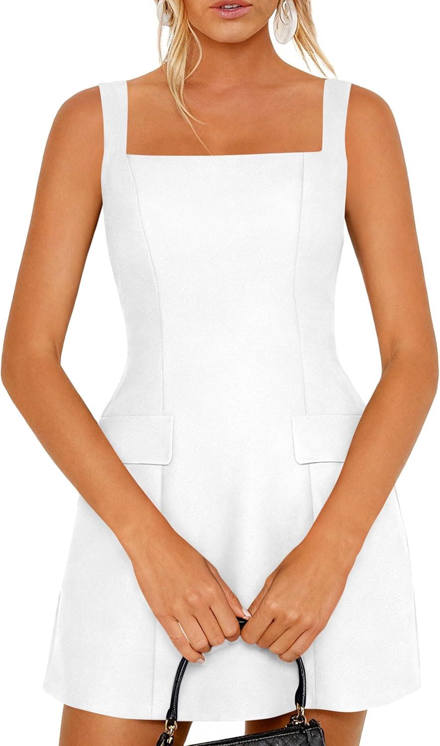 PRETTYGARDEN Womens Summer Sleeveless Mini Dress Square Neck A Line Short Cocktail Party Dresses Trendy 2026 Spring Clothes(White)